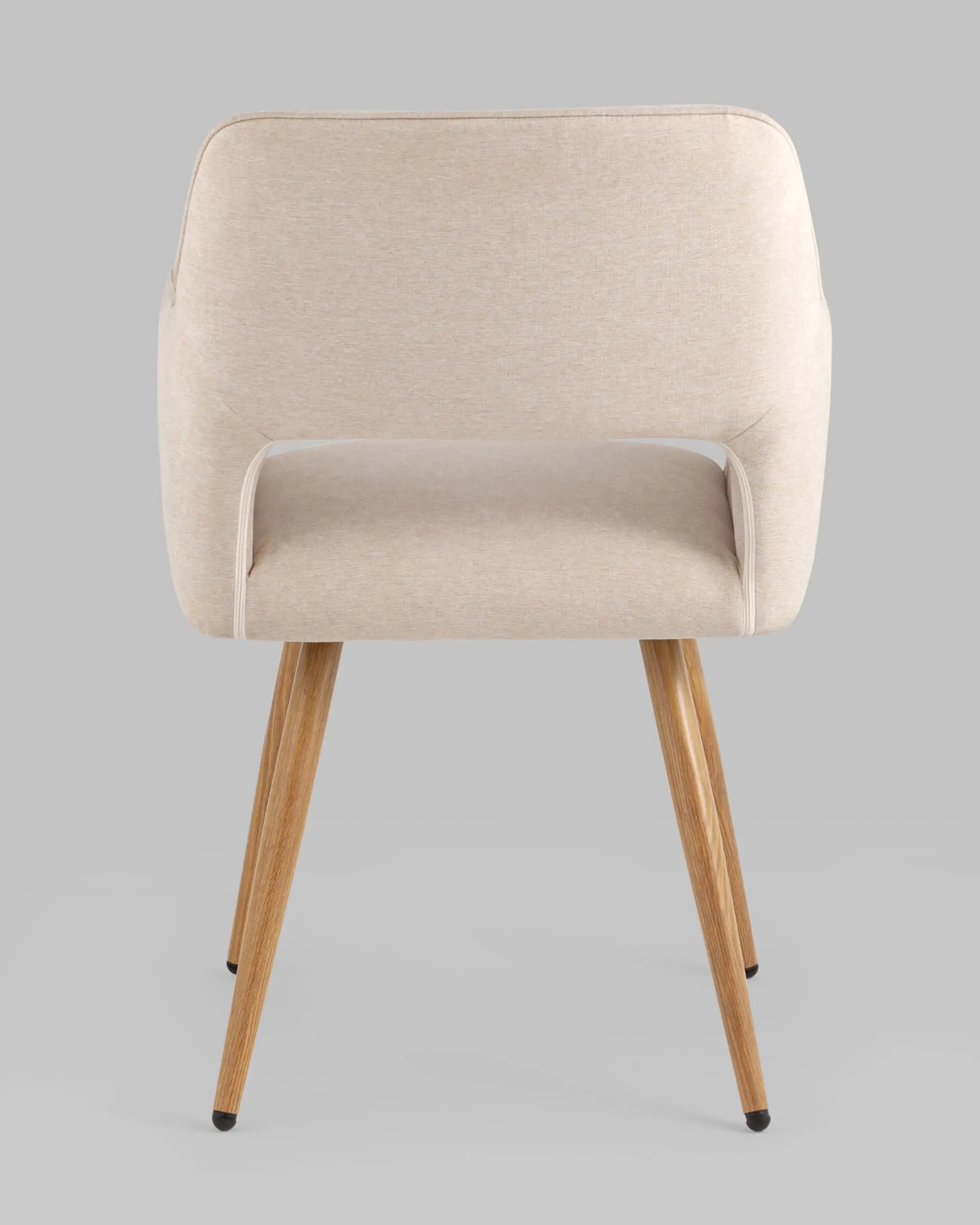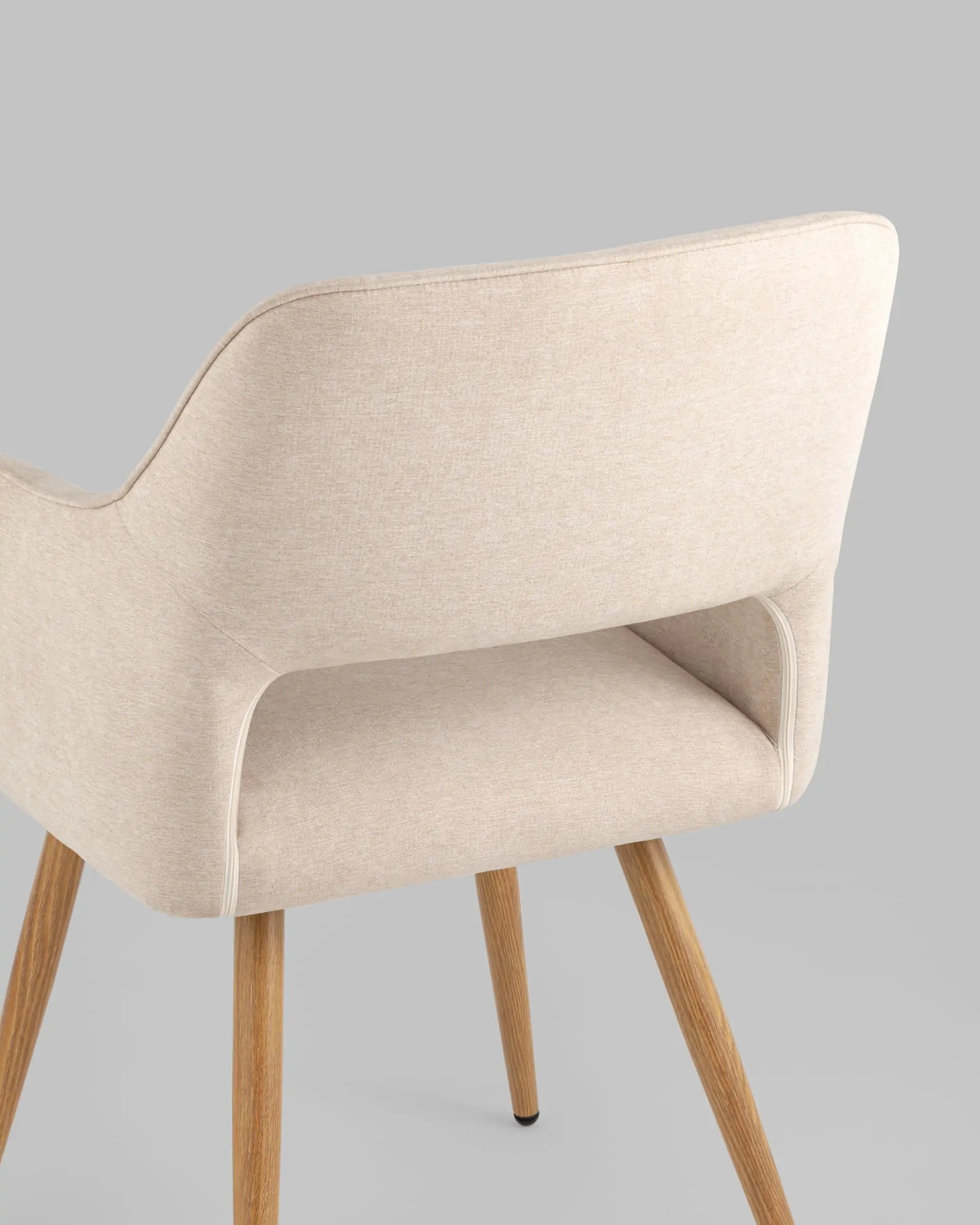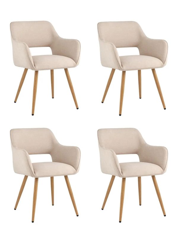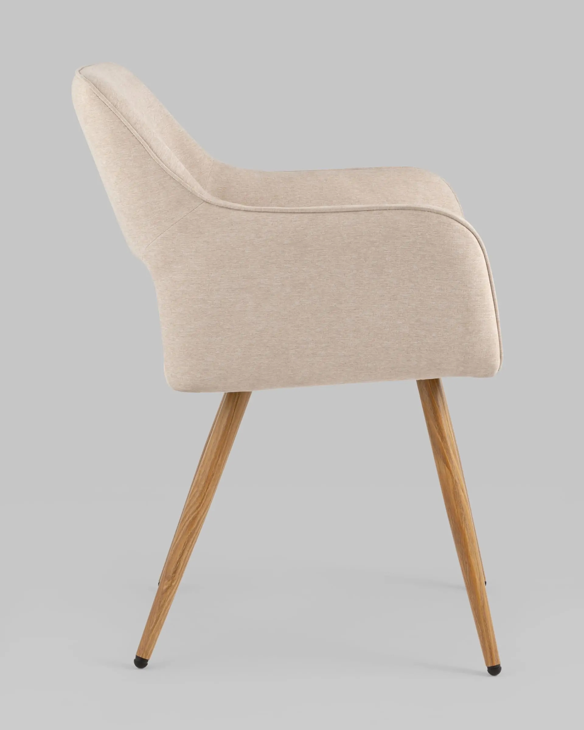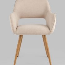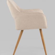 Комплект из четырех стульев. Стильный и мягкий кухонный стул имеет широкую эргономичную спинку и удобные подлокотники. Обивкой послужила высококачественная плотная рогожка. Ножки металлические с принтом под дерево.