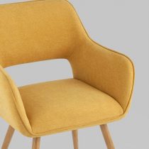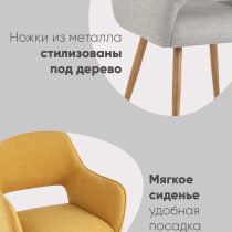 Комплект из четырех стульев. Стильный и мягкий кухонный стул имеет широкую эргономичную спинку и удобные подлокотники. Обивкой послужила высококачественная плотная рогожка. Ножки металлические с принтом под дерево.