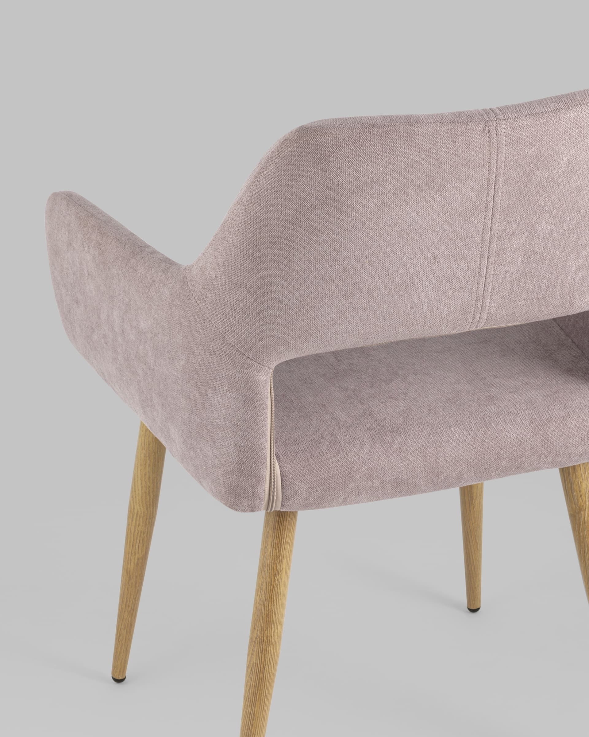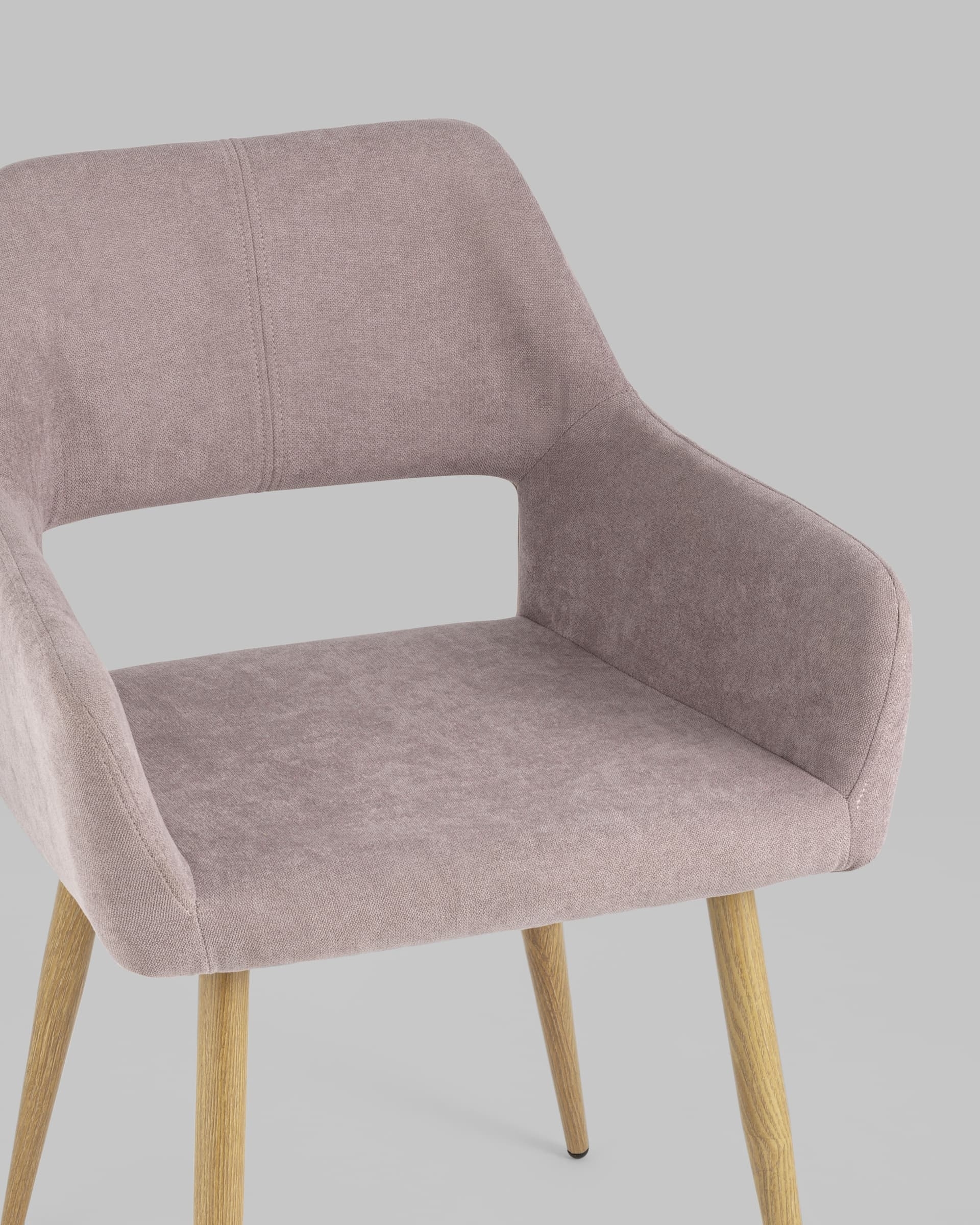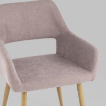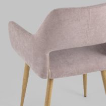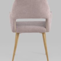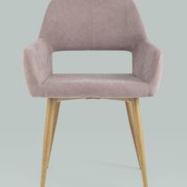 Стильный и мягкий стул имеет широкую эргономичную спинку и удобные подлокотники. Обивкой послужила высококачественная плотная ткань. Ножки металлические с принтом под дерево.