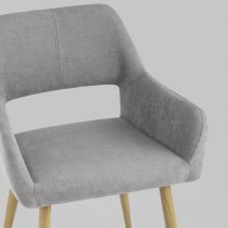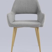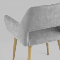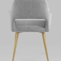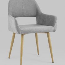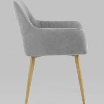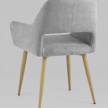 Стильный и мягкий кухонный стул имеет широкую эргономичную спинку и удобные подлокотники. Обивкой послужила высококачественная плотная ткань. Ножки металлические с принтом под дерево.