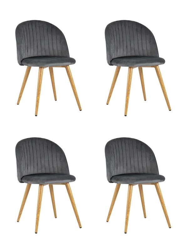 Комплект из четырех стульев. Стулья Лион с велюровой обивкой можно использовать в комплекте с обеденным или письменным столом, а также как самостоятельный предмет обстановки. Модель подходит для современных и смешанных интерьеров.