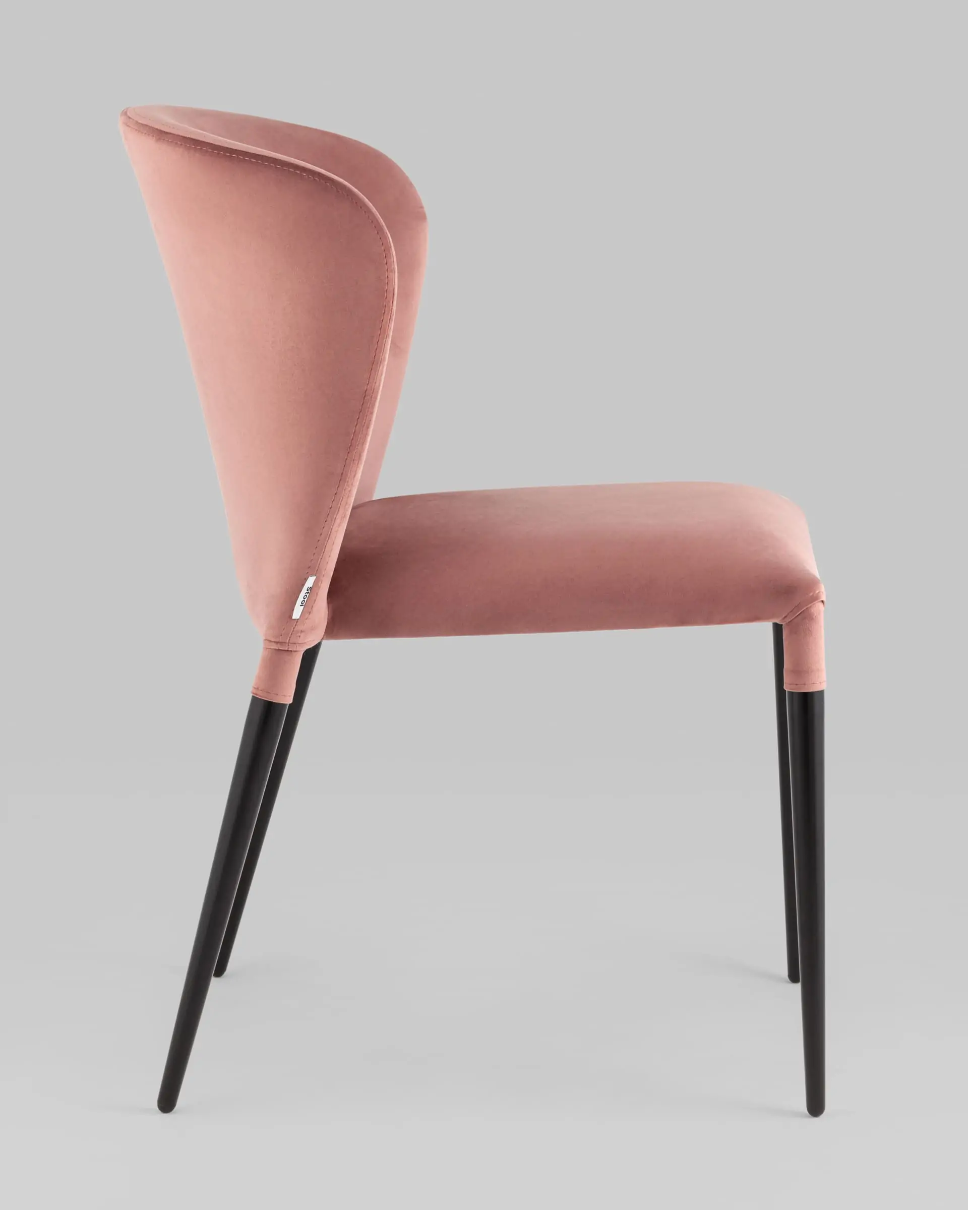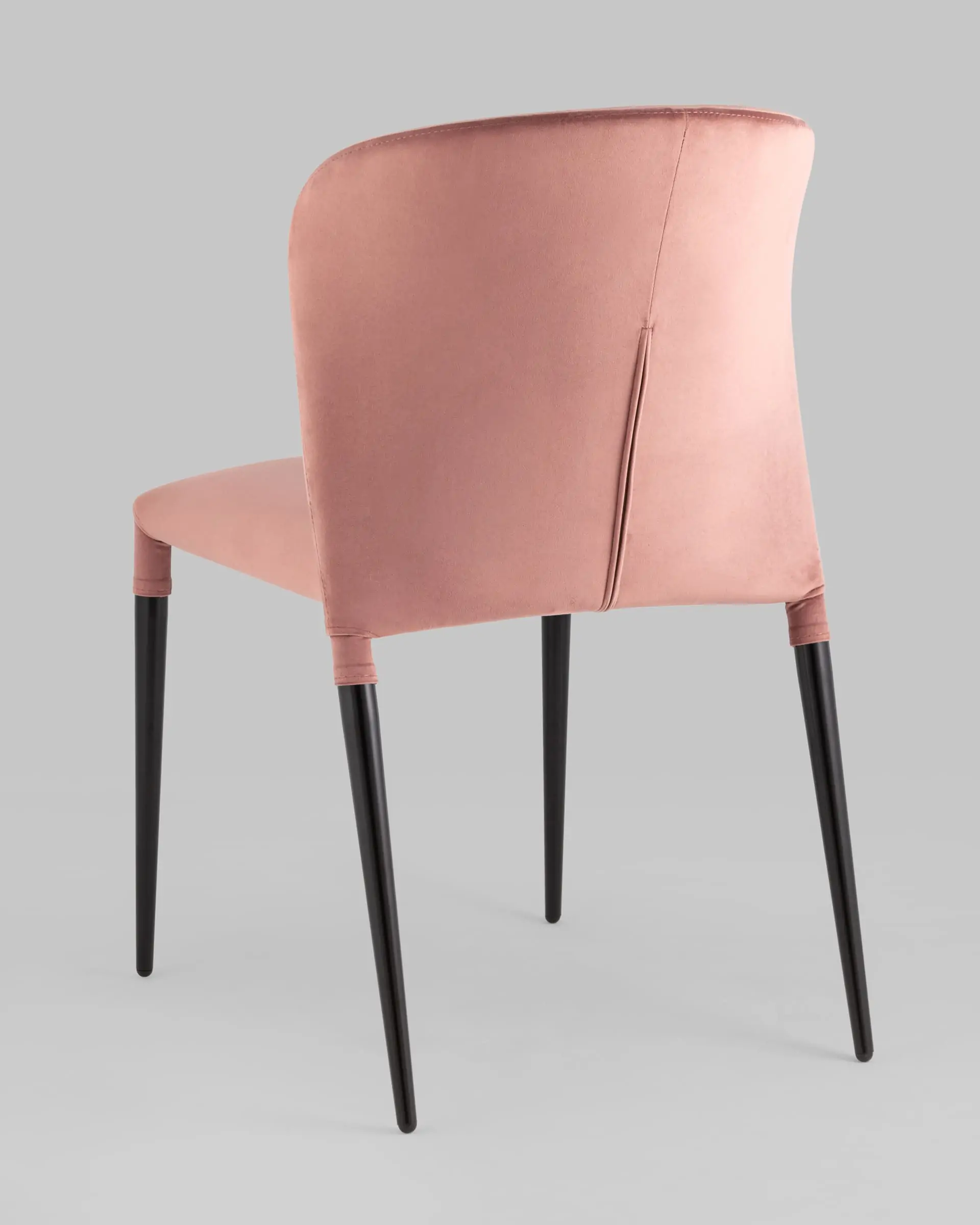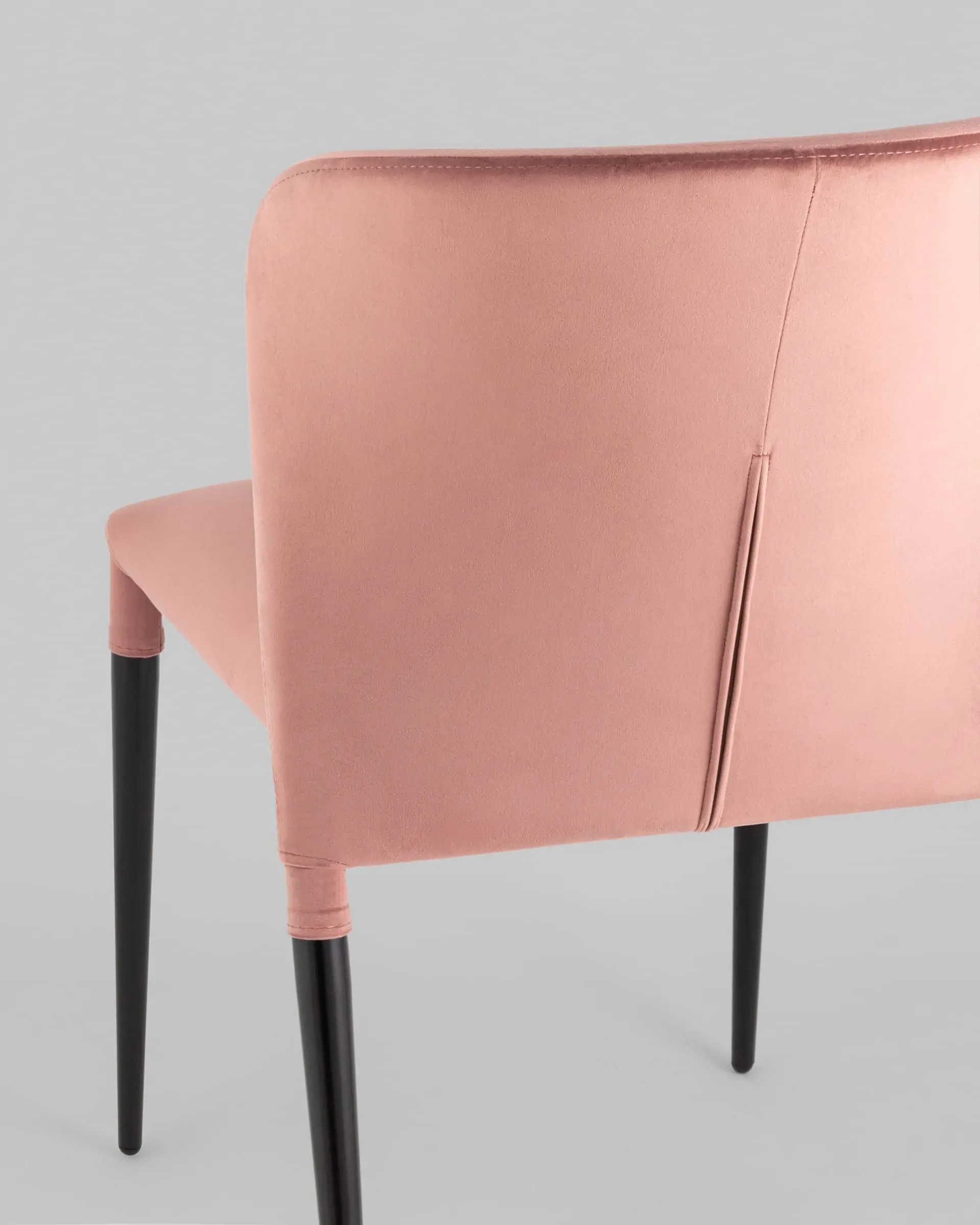 Обивка стула выполнена из велюра. Материал тактильно приятный, износостойкий, прост в уходе и быстро восстанавливает первоначальную форму. Ножки изготовлены из металла в черном цвете. Закругленная эргономичная спинка с выступающими по бокам элементами обеспечивает максимальный комфорт. На ножках предусмотрены специальные подпятники, которые предотвращают скольжение и не царапают напольное покрытие.
