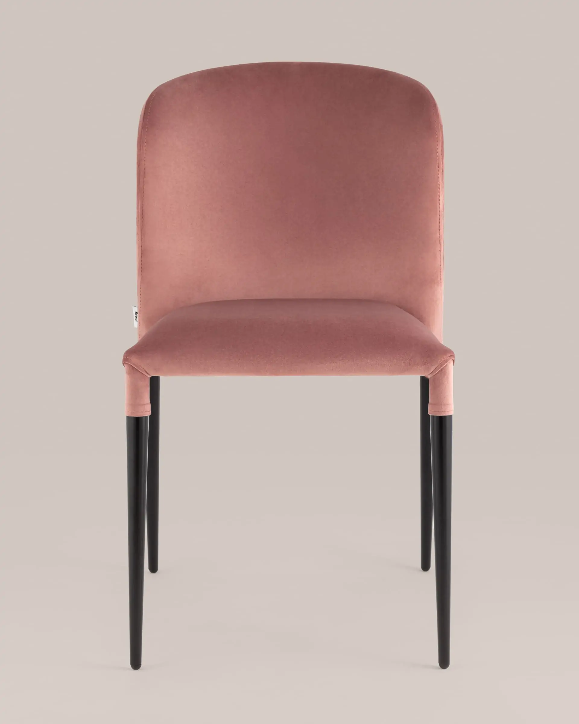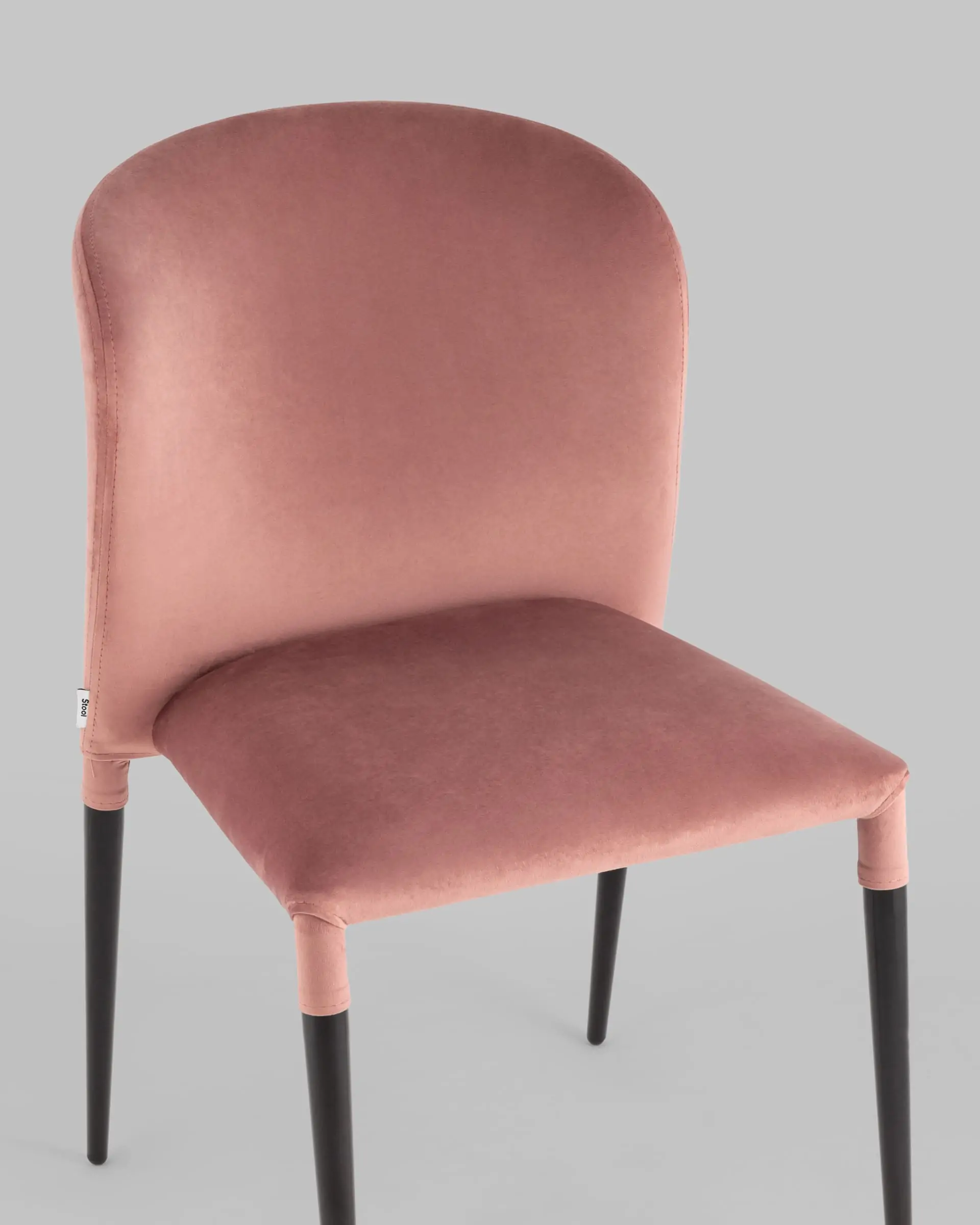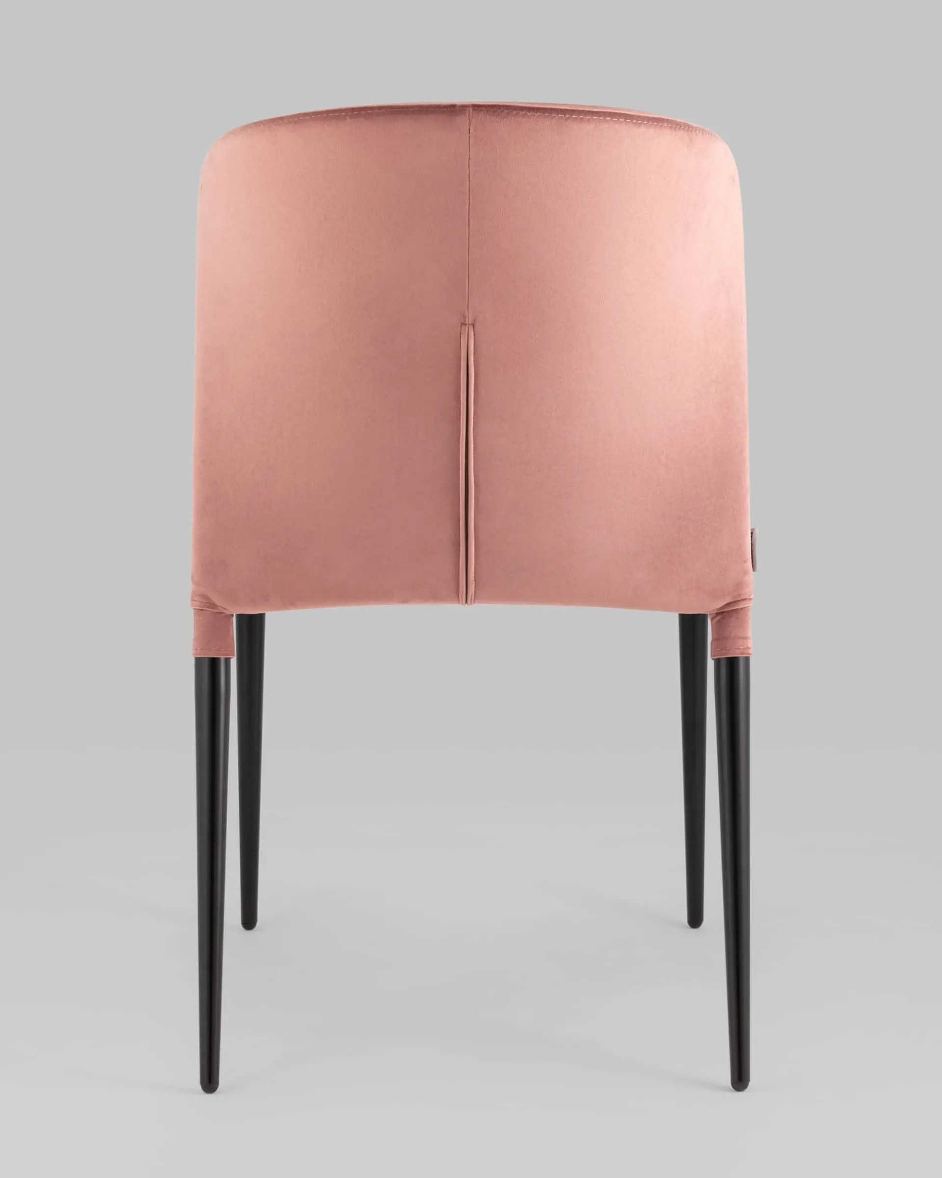 Обивка стула выполнена из велюра. Материал тактильно приятный, износостойкий, прост в уходе и быстро восстанавливает первоначальную форму. Ножки изготовлены из металла в черном цвете. Закругленная эргономичная спинка с выступающими по бокам элементами обеспечивает максимальный комфорт. На ножках предусмотрены специальные подпятники, которые предотвращают скольжение и не царапают напольное покрытие.