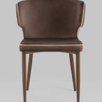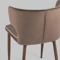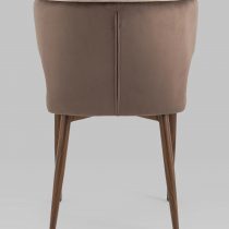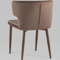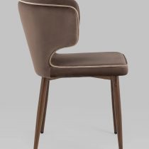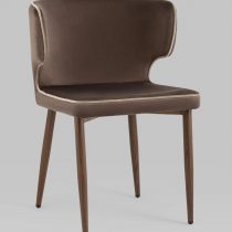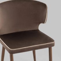 В качестве обивки используется велюр – прочный износостойкий материал. Прямые металлические ножки, стилизованные под темное дерево, имеют нестандартную форму в виде перевернутого конуса, поэтому обеспечивают хорошую устойчивость и делают стул оригинальным.