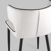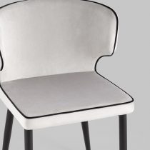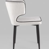 В качестве обивки используется велюр – прочный износостойкий материал. Прямые металлические ножки в черном цвете имеют нестандартную форму в виде перевернутого конуса, поэтому обеспечивают хорошую устойчивость и делают стул оригинальным.