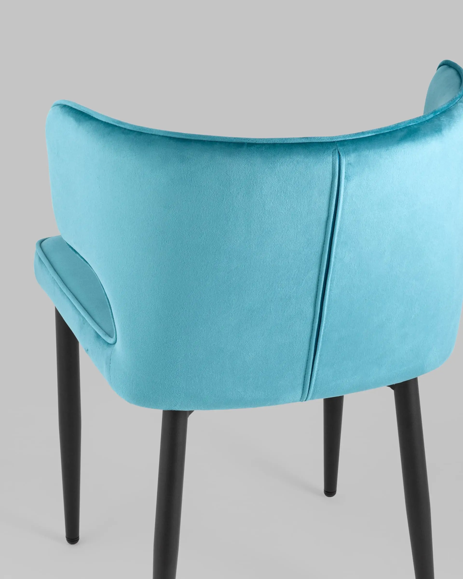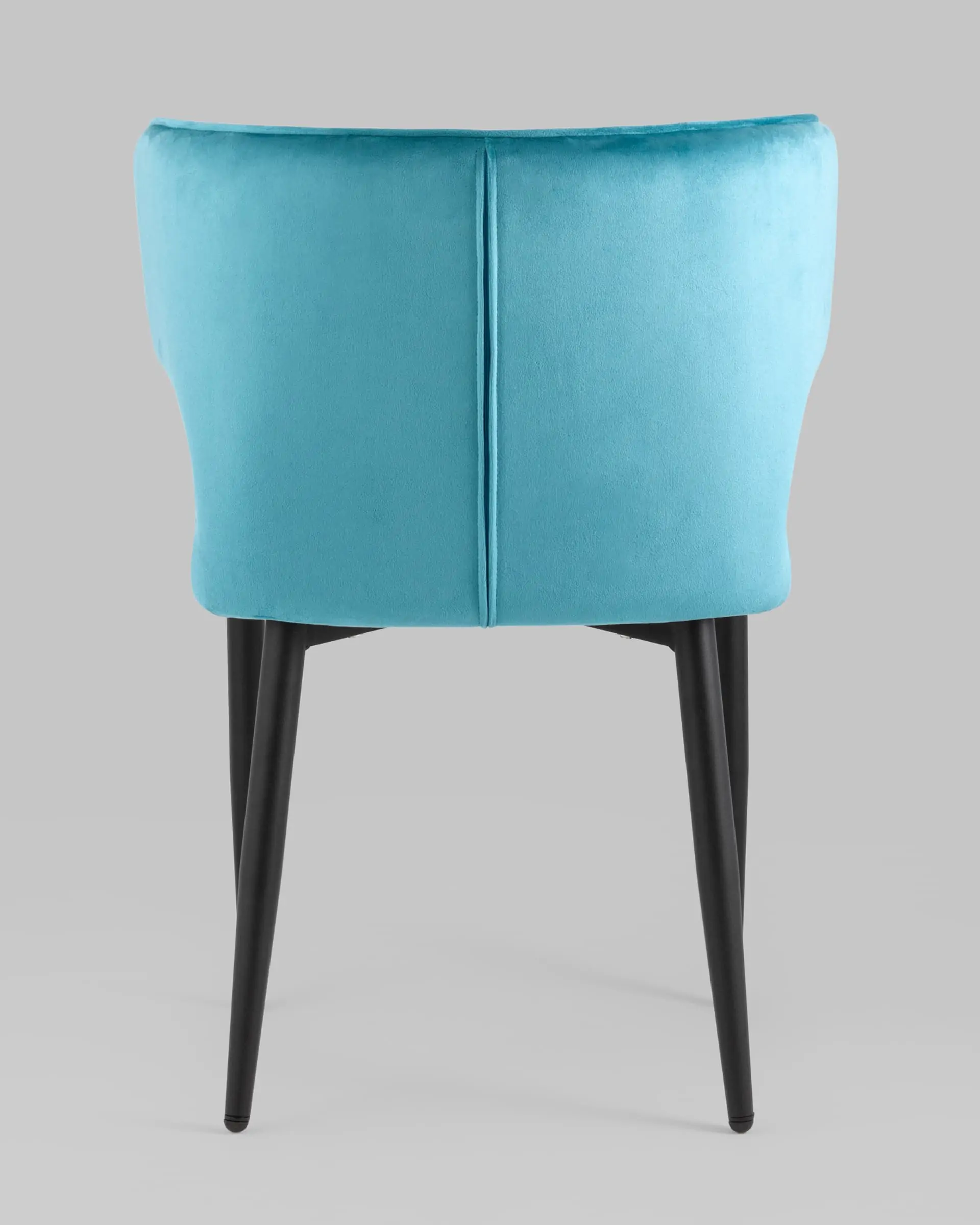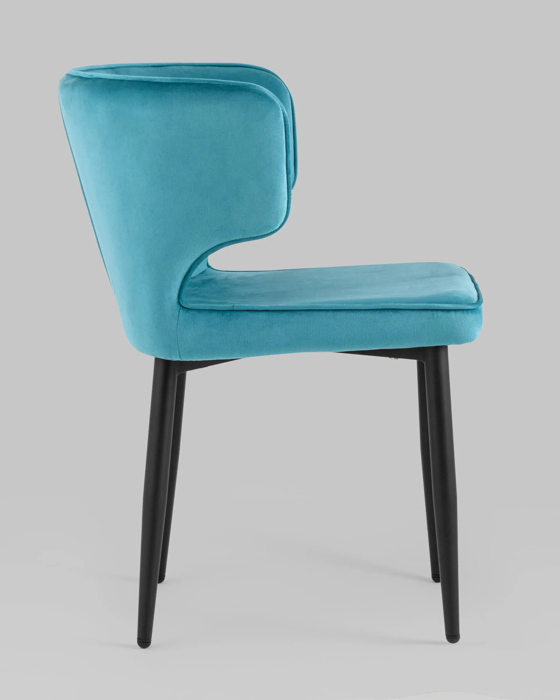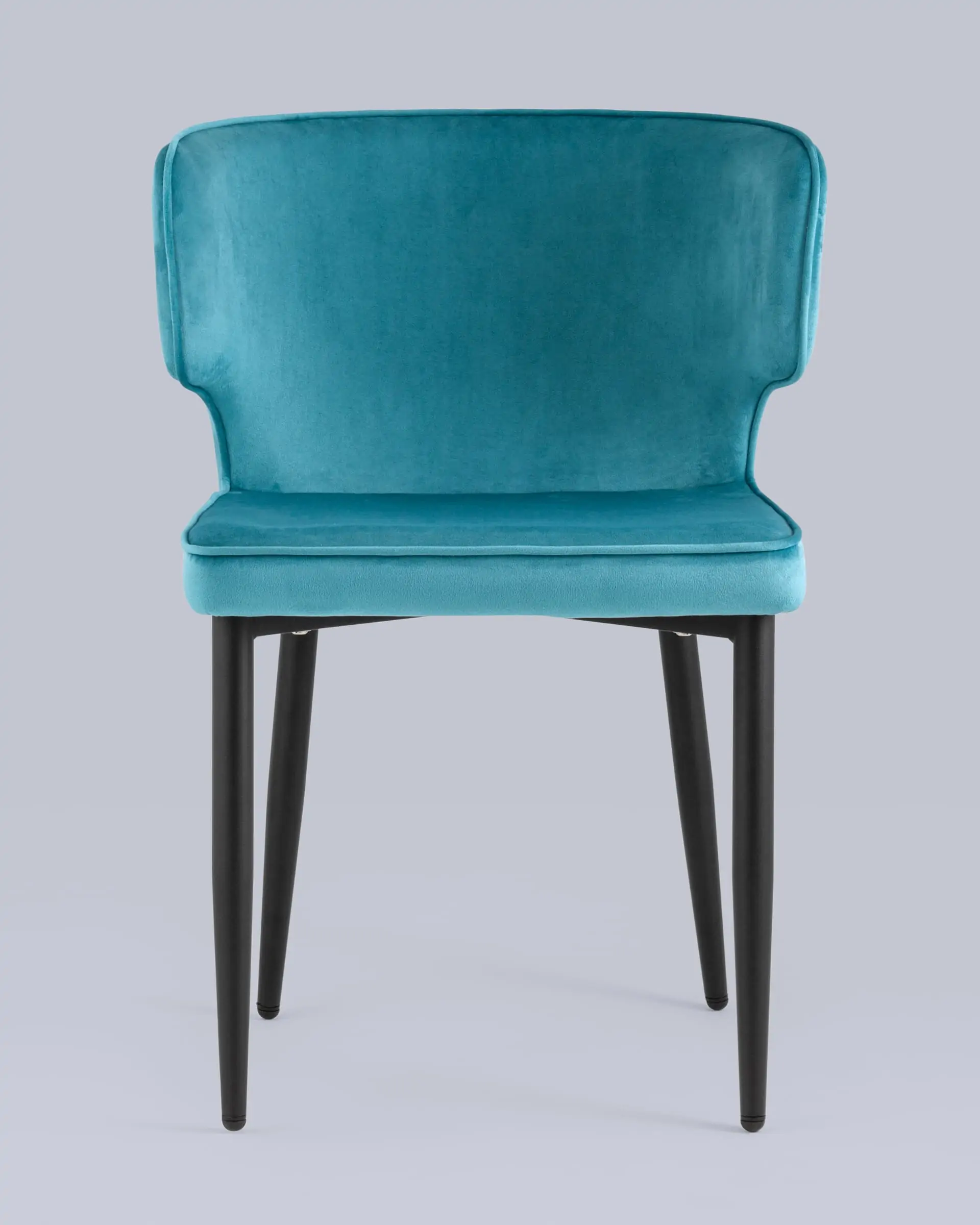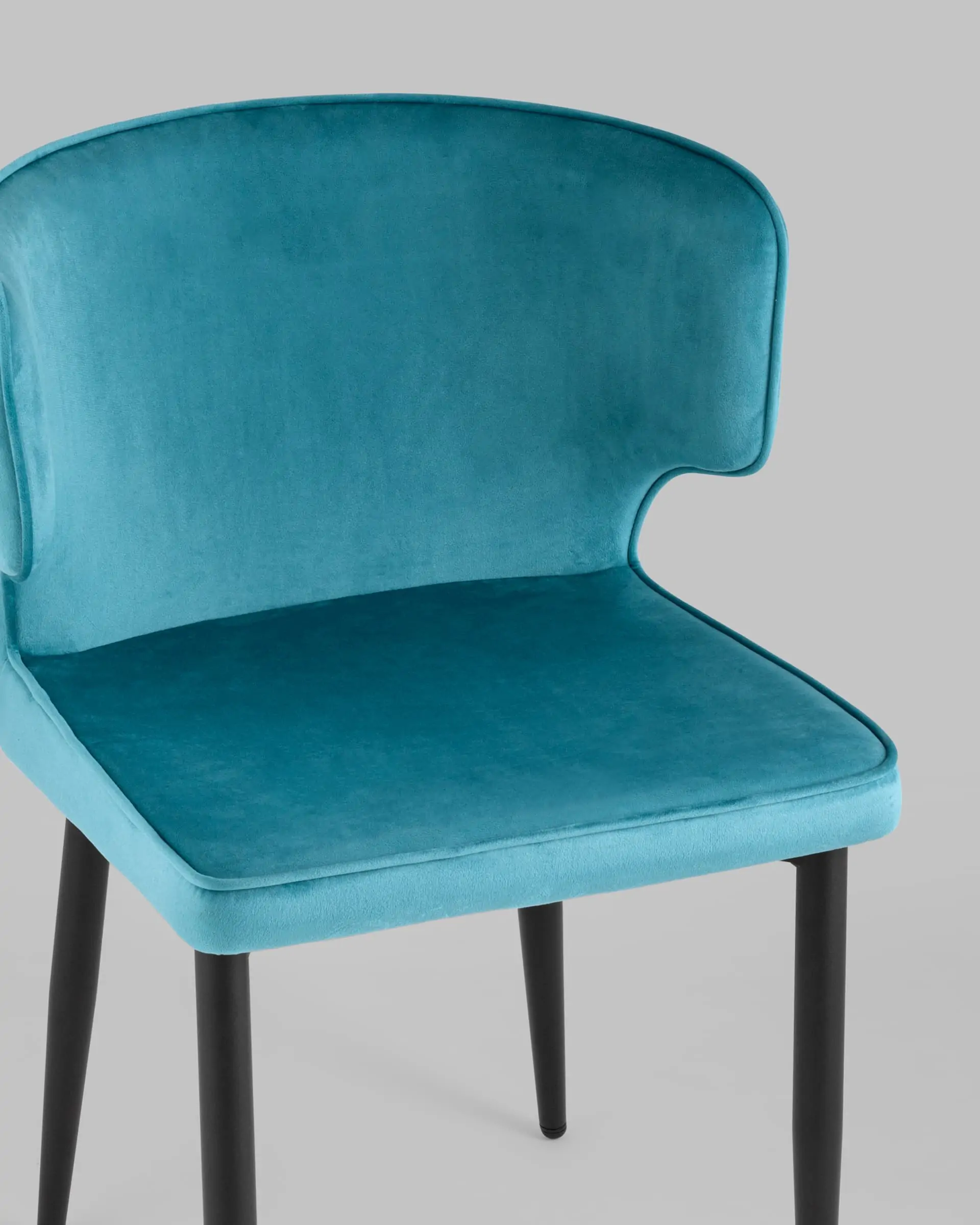 В качестве обивки используется велюр – прочный износостойкий материал. Прямые металлические ножки в черном цвете имеют нестандартную форму в виде перевернутого конуса, поэтому обеспечивают хорошую устойчивость и делают стул оригинальным.