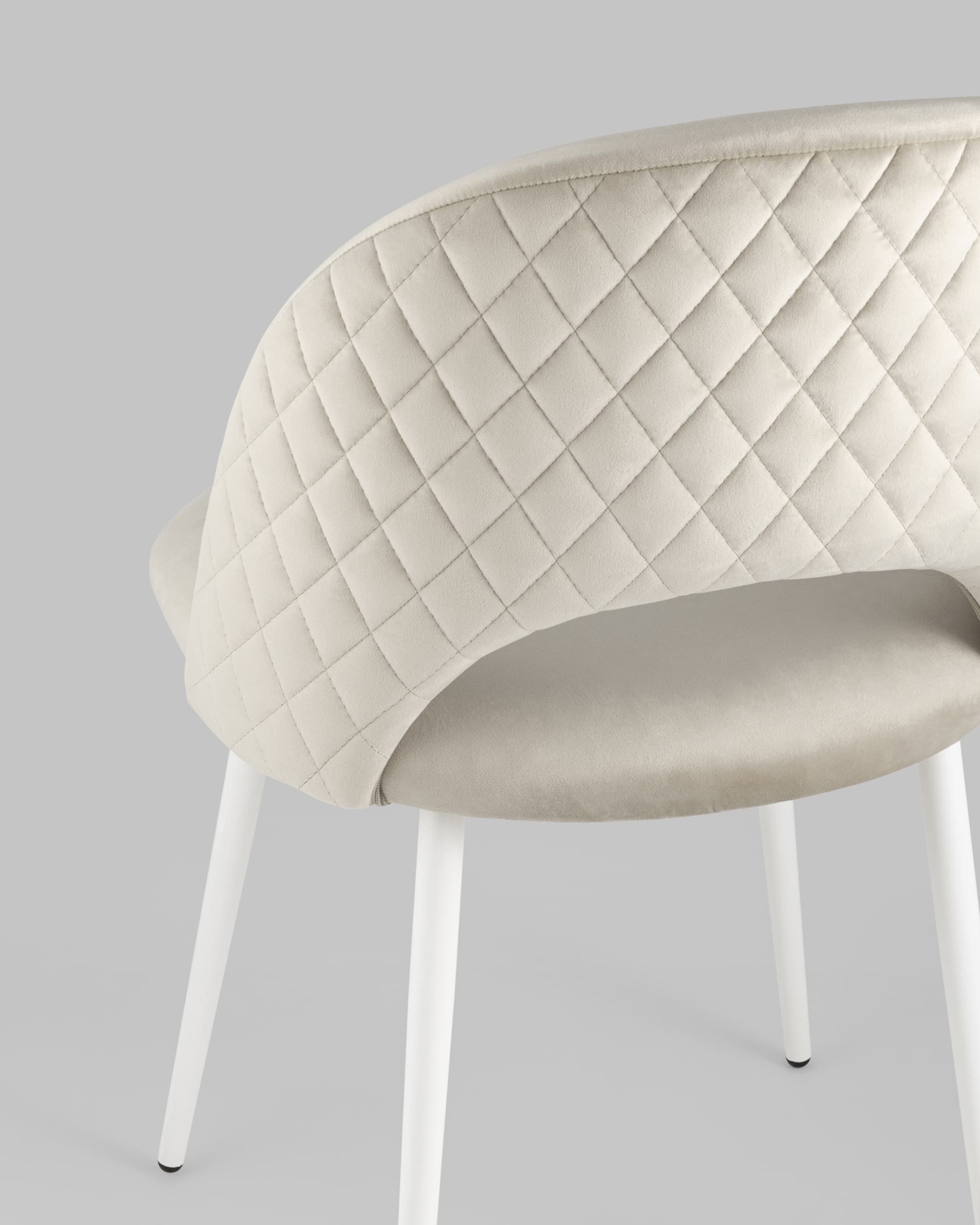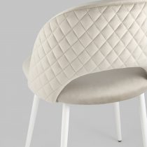 Лаконичный дизайн с полукруглой спинкой в нежной велюровой обивке придется по душе любителям комфорта и уюта. Внешняя сторона спинки отдекорирована геометричной строчкой в виде ромбов.