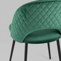 Лаконичный дизайн с полукруглой спинкой в нежной велюровой обивке придется по душе любителям комфорта и уюта. Внешняя сторона спинки отдекорирована геометричной строчкой в виде ромбов.