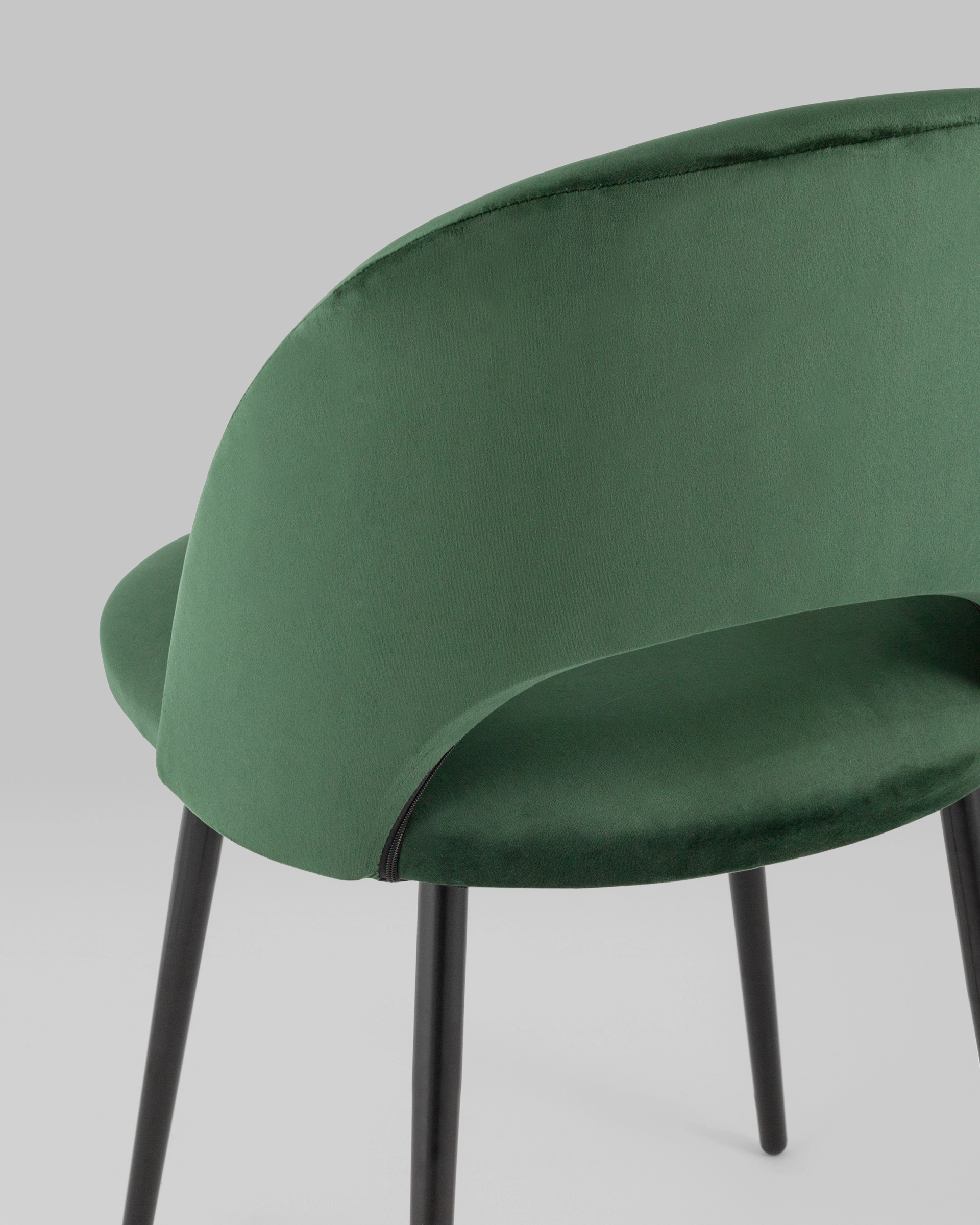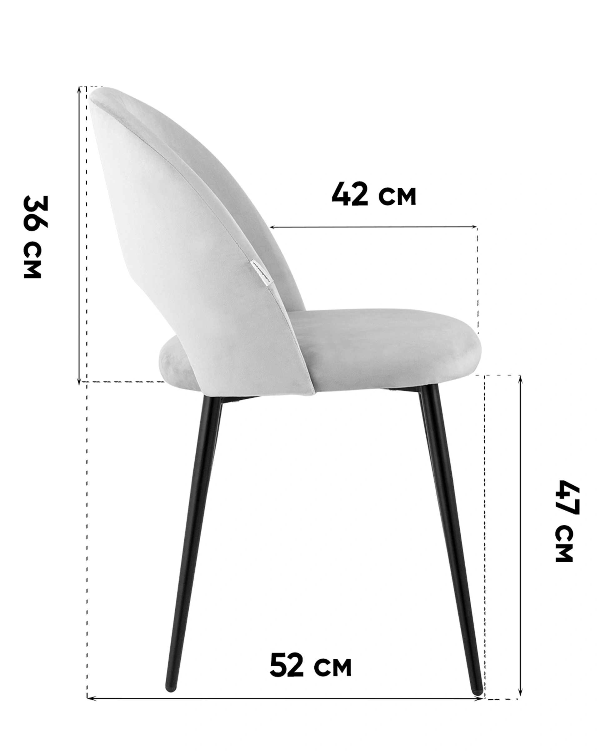 Лаконичный дизайн с полукруглой спинкой в нежной велюровой обивке придется по душе любителям комфорта и уюта. Каркас стульев металлический, ножки выполнены в черном цвете, прекрасно впишутся в любой современный дизайн интерьера.