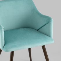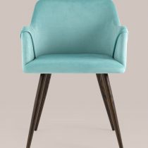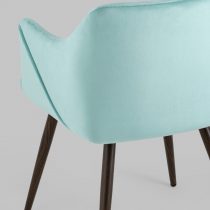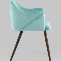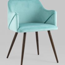 Стильный и мягкий кухонный стул имеет широкую эргономичную спинку и удобные подлокотники. Обивкой послужила высококачественная плотная ткань. Ножки металлические, окрашенные в черный цвет. Высота подлокотников от пола – 63,5 см.