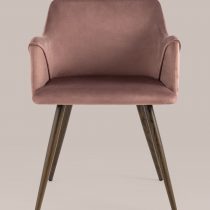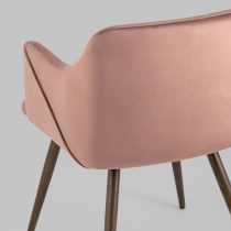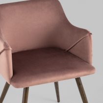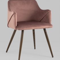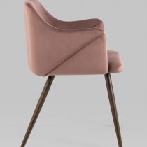 Стильный и мягкий кухонный стул имеет широкую эргономичную спинку и удобные подлокотники. Обивкой послужила высококачественная плотная ткань. Ножки металлические с принтом под дерево. Высота подлокотников от пола – 63,5 см.