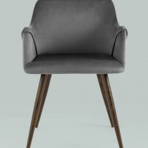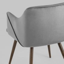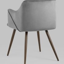 Стильный и мягкий кухонный стул имеет широкую эргономичную спинку и удобные подлокотники. Обивкой послужила высококачественная плотная ткань. Ножки металлические с принтом под дерево. Высота подлокотников от пола – 63,5 см.