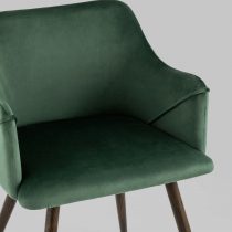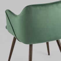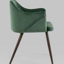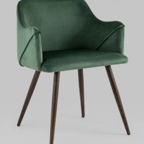 Стильный и мягкий кухонный стул имеет широкую эргономичную спинку и удобные подлокотники. Обивкой послужила высококачественная плотная ткань. Ножки металлические с принтом под дерево. Высота подлокотников от пола – 63,5 см.