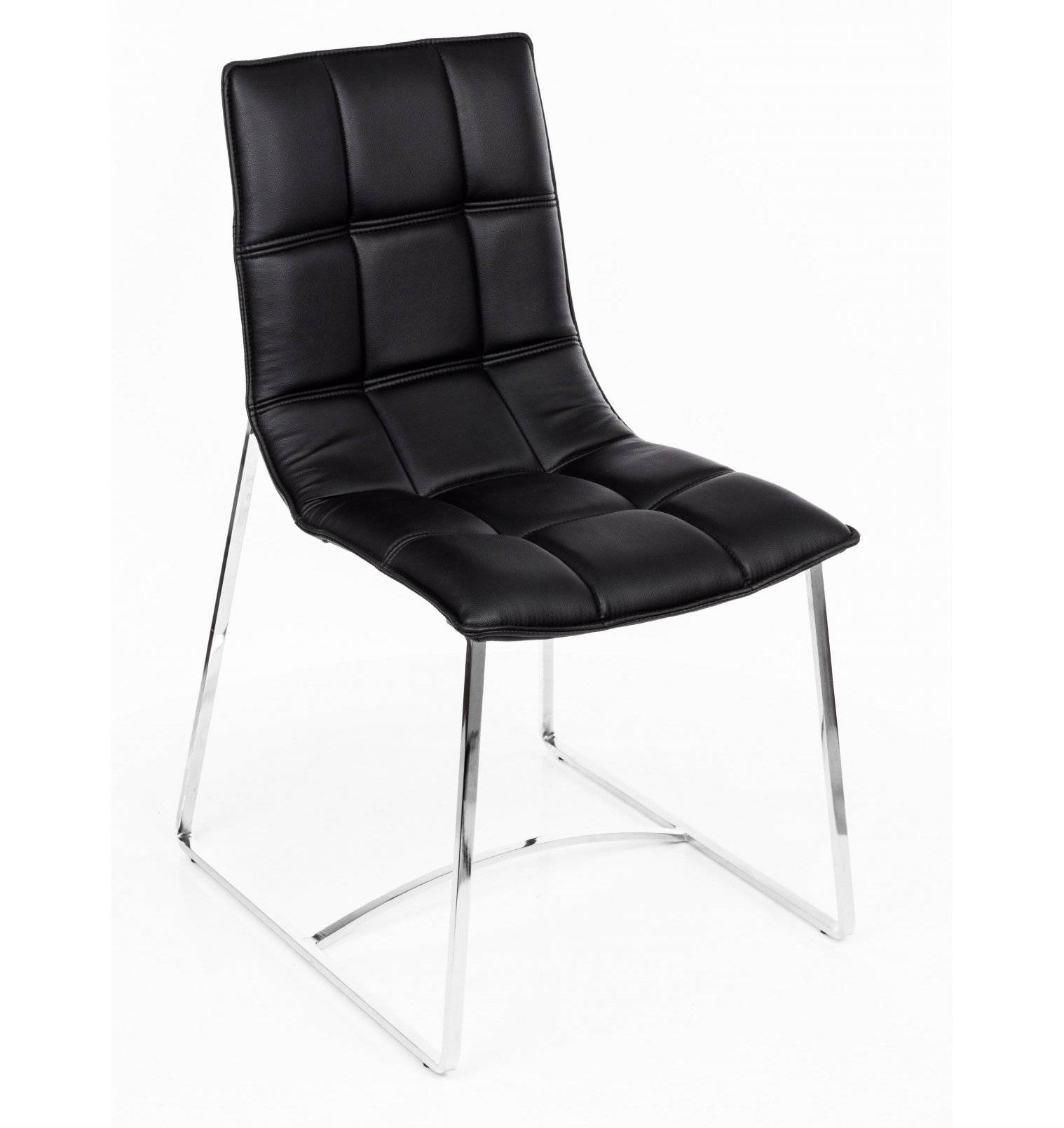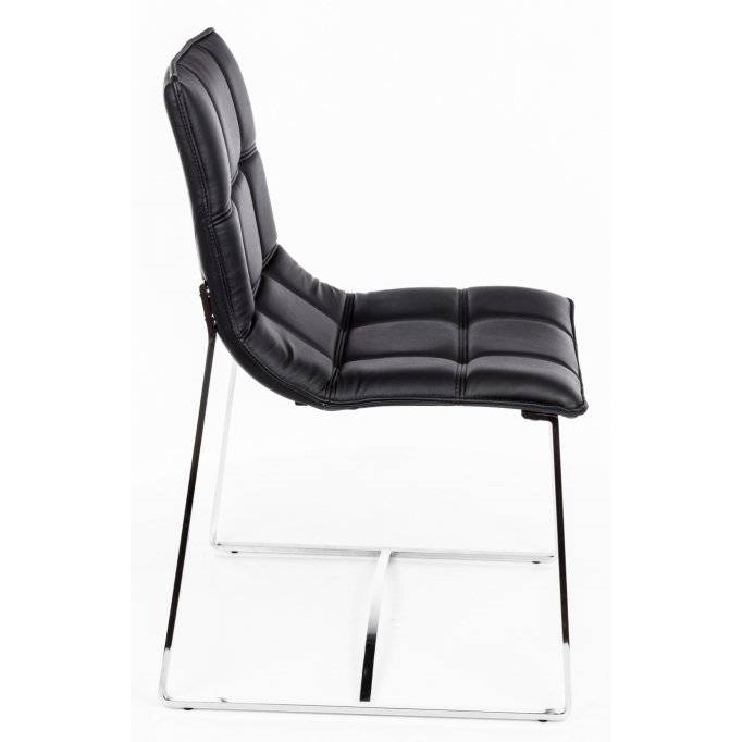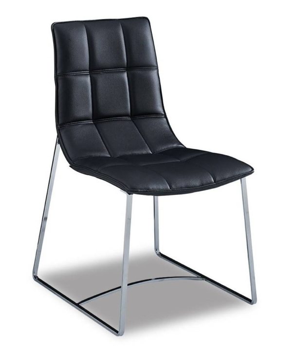 Лаконичная модель, которая дополнит интерьер в современном стиле. Эргономичная спинка и сидение изготовлены из экокожи с прострочкой в виде квадратов. Ножки, соединенные перекладиной, выполнены из хромированного металла.