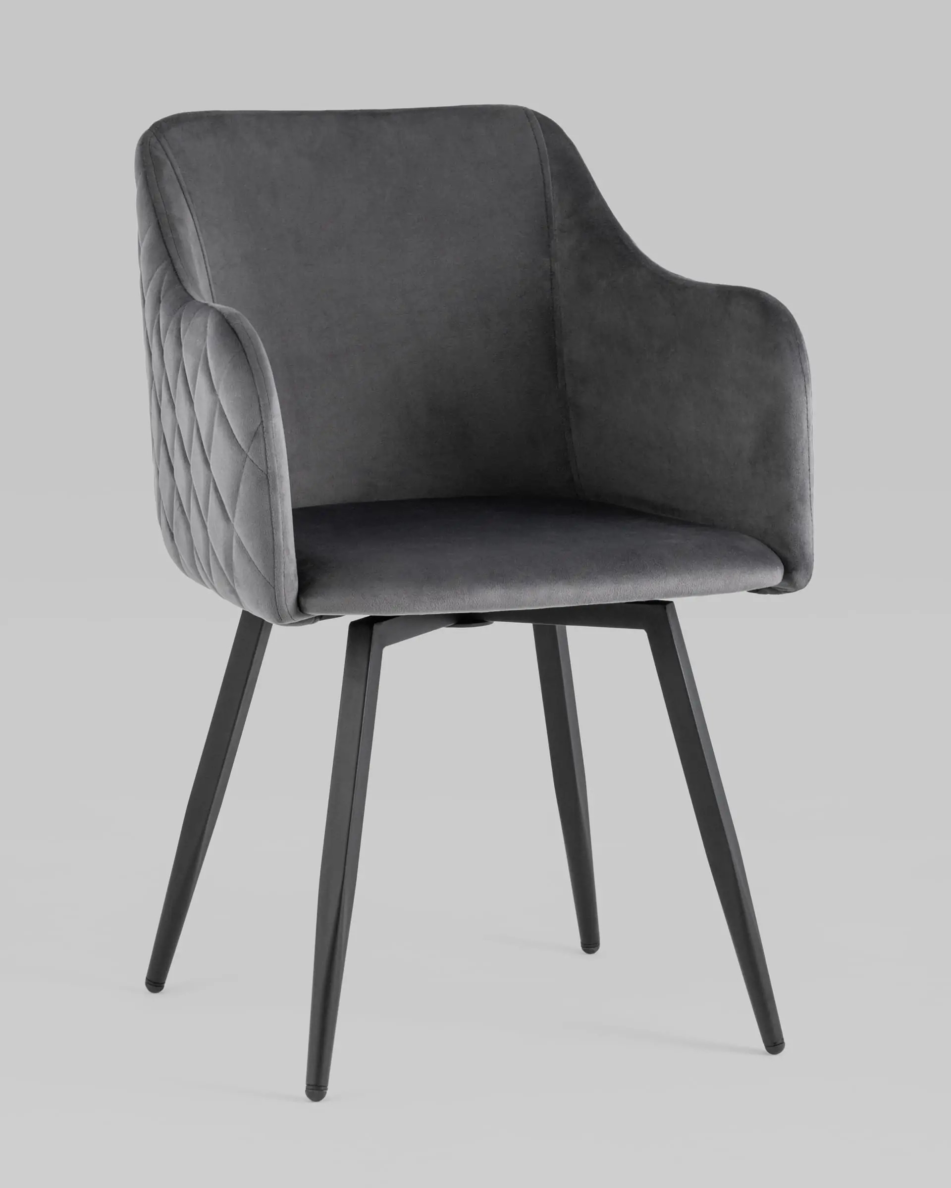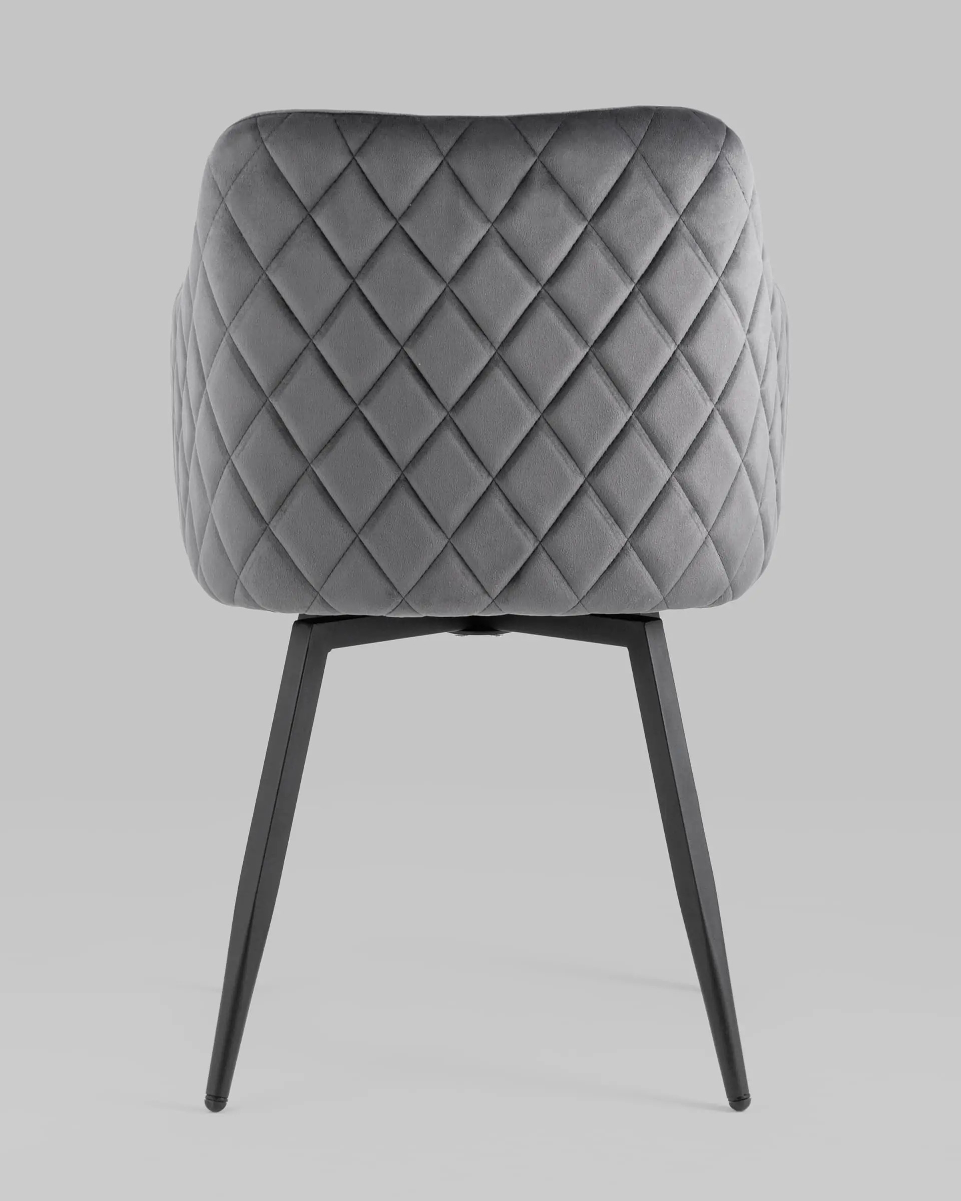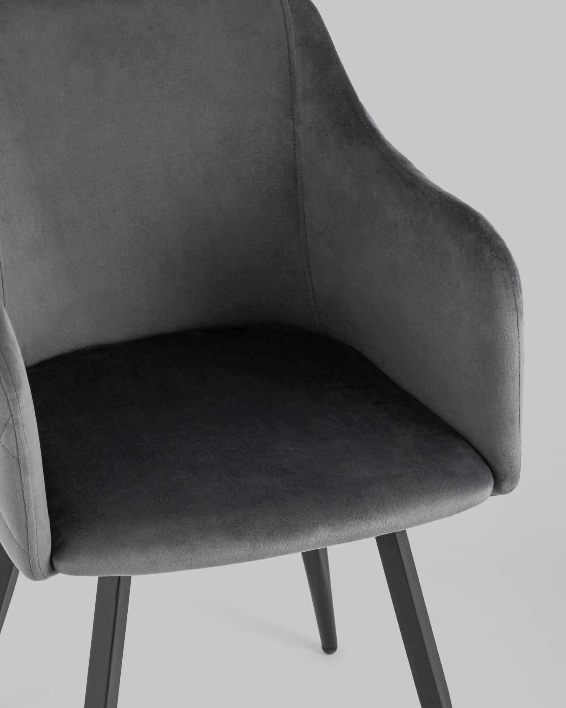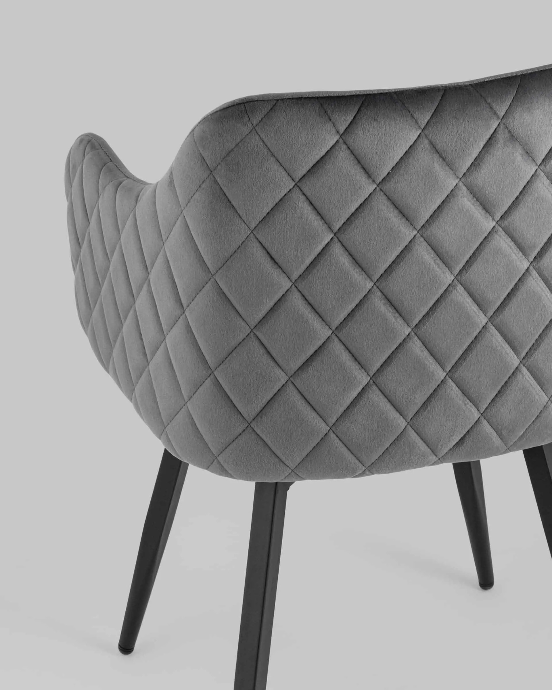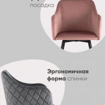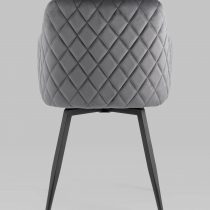 Мягкий стул с округлой спинкой анатомической формы и удобными подлокотниками подарит комфорт и уют. В качестве обивки используется велюр – прочный износостойкий и приятный на ощупь материал. Внешняя сторона спинки и подлокотников имеет декоративную строчку в виде ромбов.