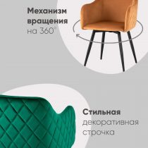 Прочные ножки выполнены из металла в черном цвете, поэтому обеспечивают хорошую устойчивость и делают стул оригинальным. Дополнительная функция вращения сиденья обеспечивает максимальный комфорт.