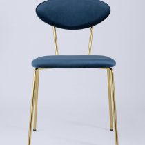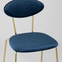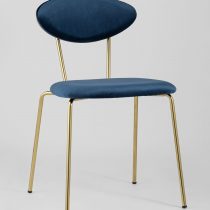 Стильный стул с металлическим каркасом золотого цвета. Обивка выполнена из мягкого велюра. Широкое сиденье обеспечивает удобную посадку и уют. Такая модель стула прекрасно дополнит интерьер кухни или гостиной в современном стиле.