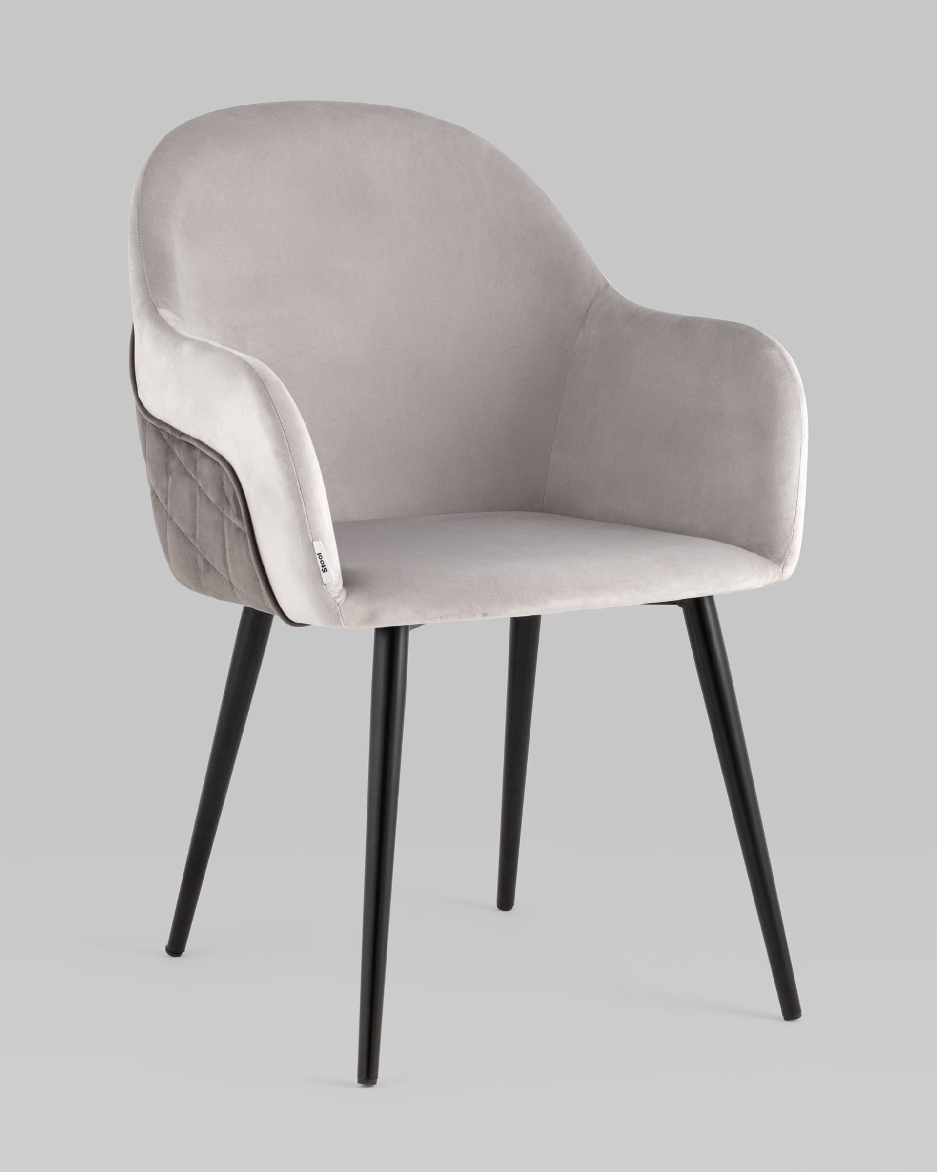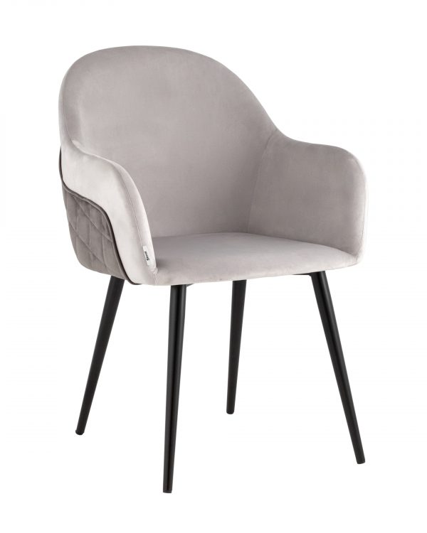 Стильный кухонный стул с двухцветной обивкой и мягкими подлокотниками. Красивый дизайн украсит как столовую зону кухни и гостиной, так и дополнит интерьер ресторана или кафе.Обивка выполнена из велюра, прочного и износостойкого материала. Внешняя сторона спинки украшена ромбовидной стежкой. Подлокотники обеспечат максимальный комфорт. Прочные металлические ножки в черном цвете выдерживают нагрузку до 120 кг. На ножках дополнительно предусмотрены специальные подпятники, которые предотвращают скольжение и повреждение напольного покрытия.