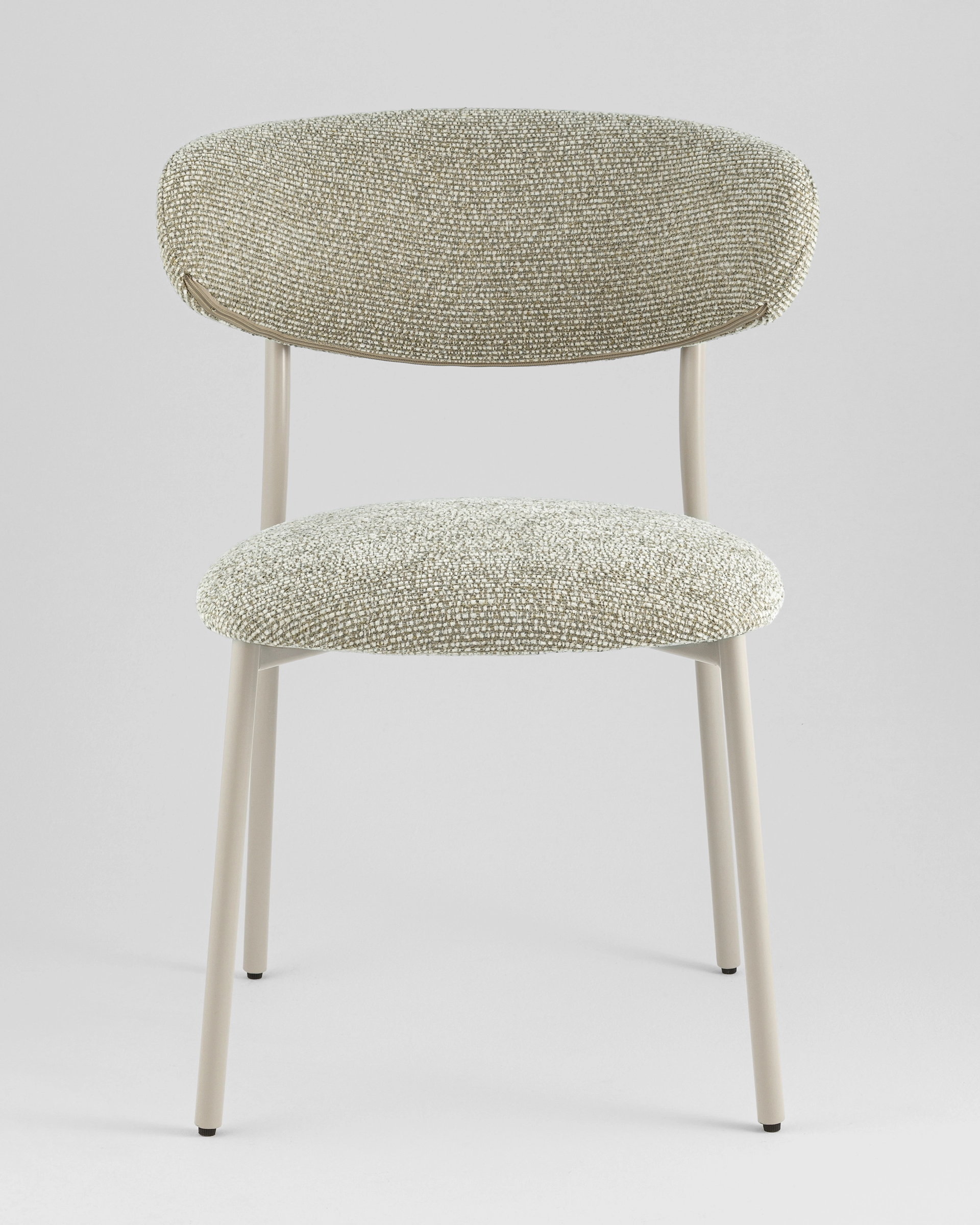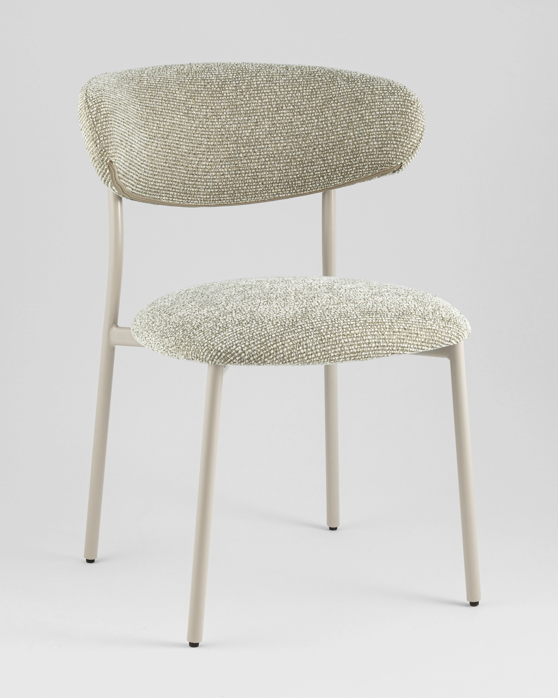 Обивка из ткани букле отличается приятной текстурой и трендовой фактурой. Этот материал устойчив к износу, хорошо держит форму и создаёт уютный, тактильно комфортный эффект. Наполнитель сиденья из поролона обеспечивает мягкую посадку, делая использование стула особенно комфортным даже при длительном сидении.