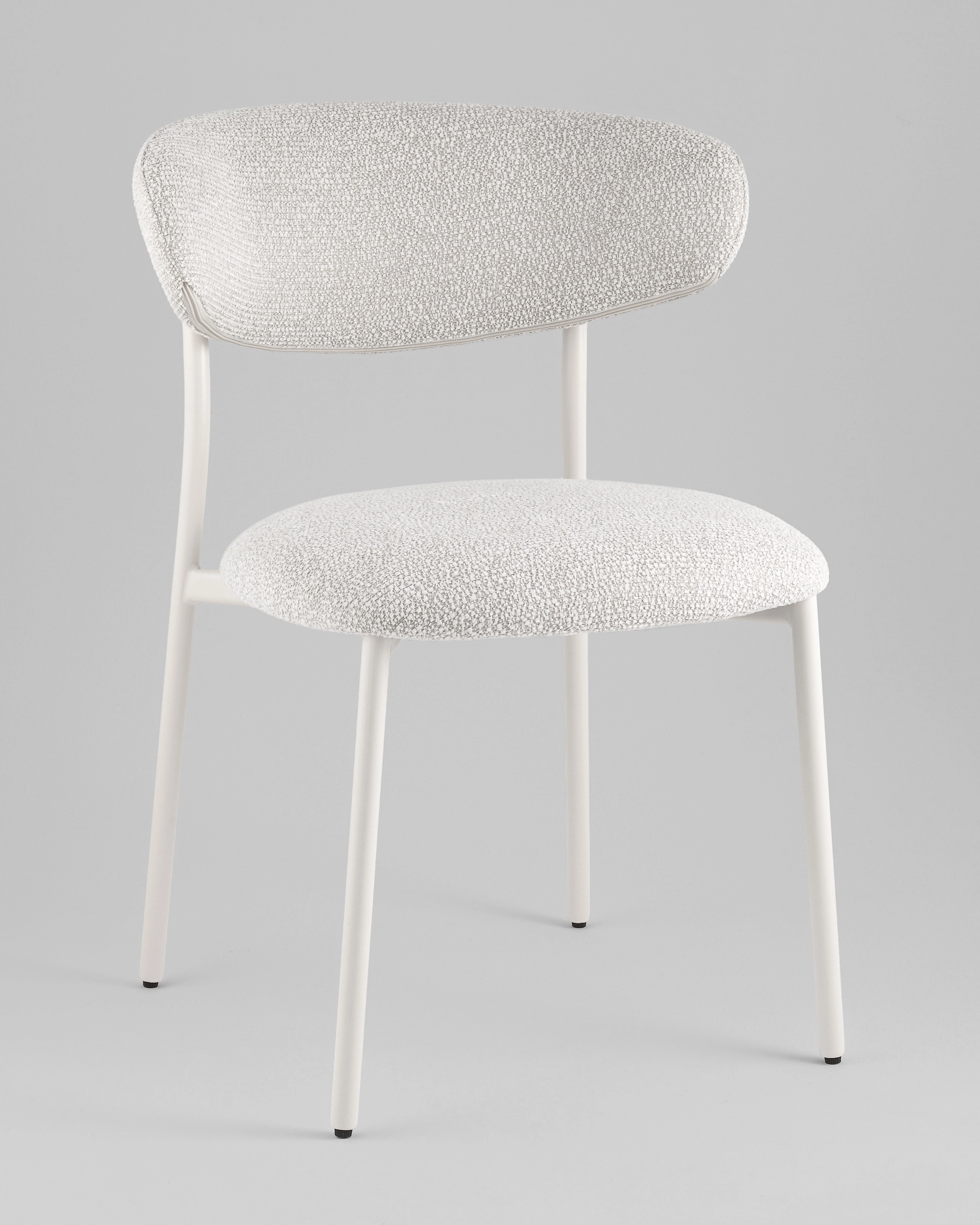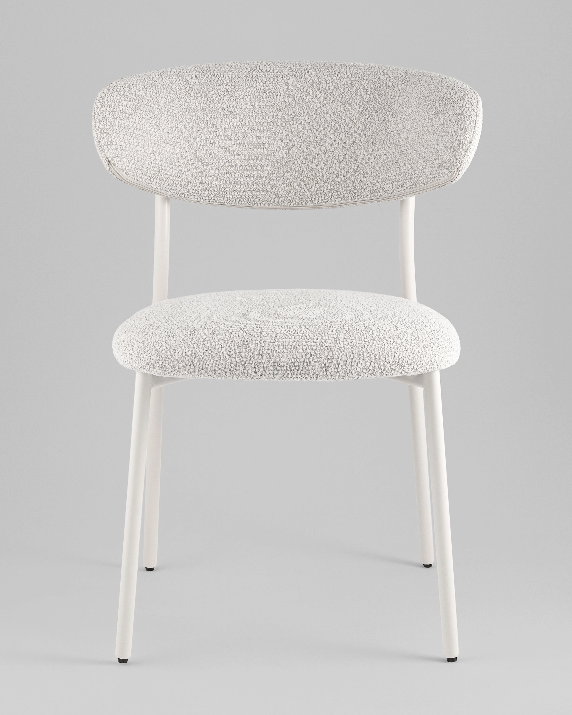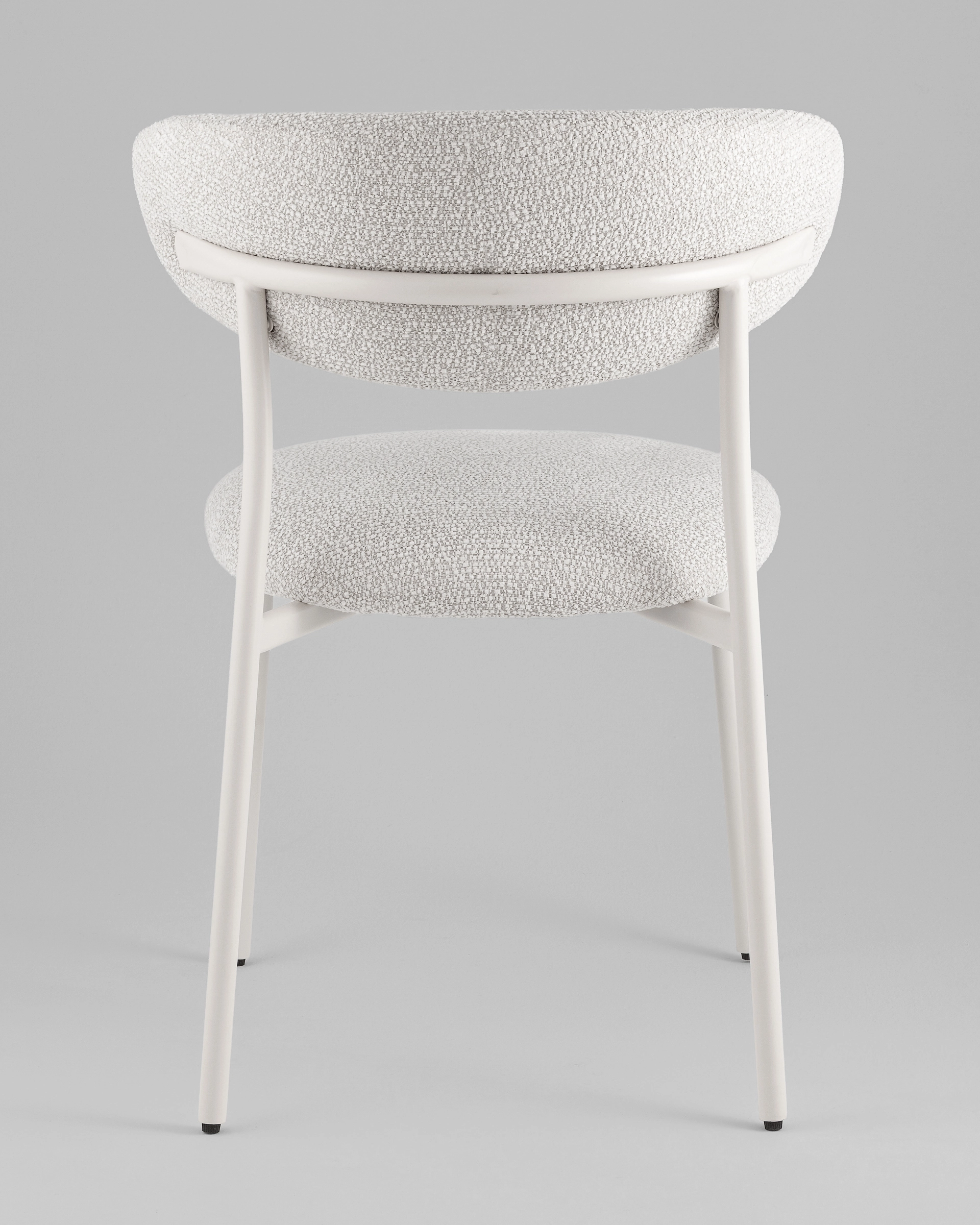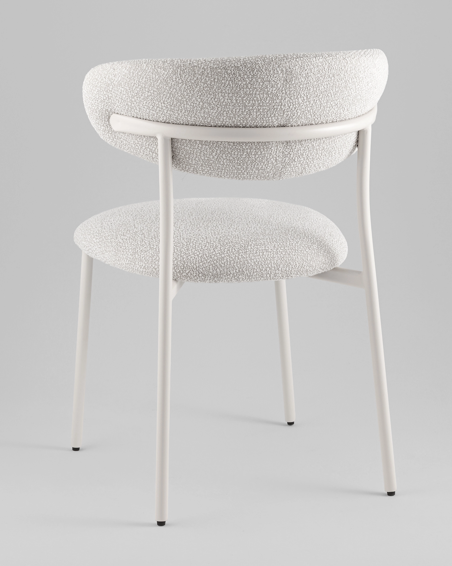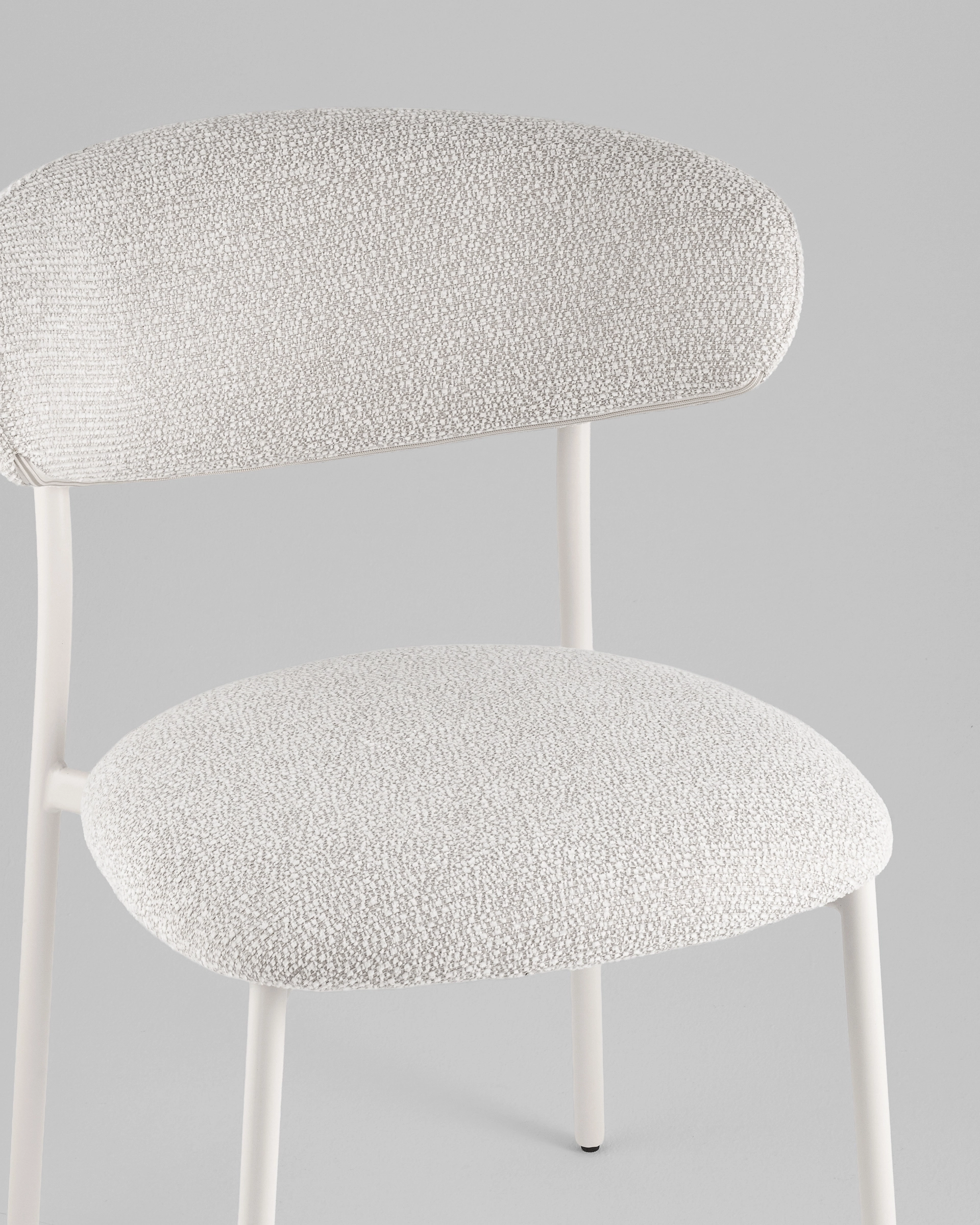 Обивка из ткани букле отличается приятной текстурой и трендовой фактурой. Этот материал устойчив к износу, хорошо держит форму и создаёт уютный, тактильно комфортный эффект. Наполнитель сиденья из поролона обеспечивает мягкую посадку, делая использование стула особенно комфортным даже при длительном сидении.