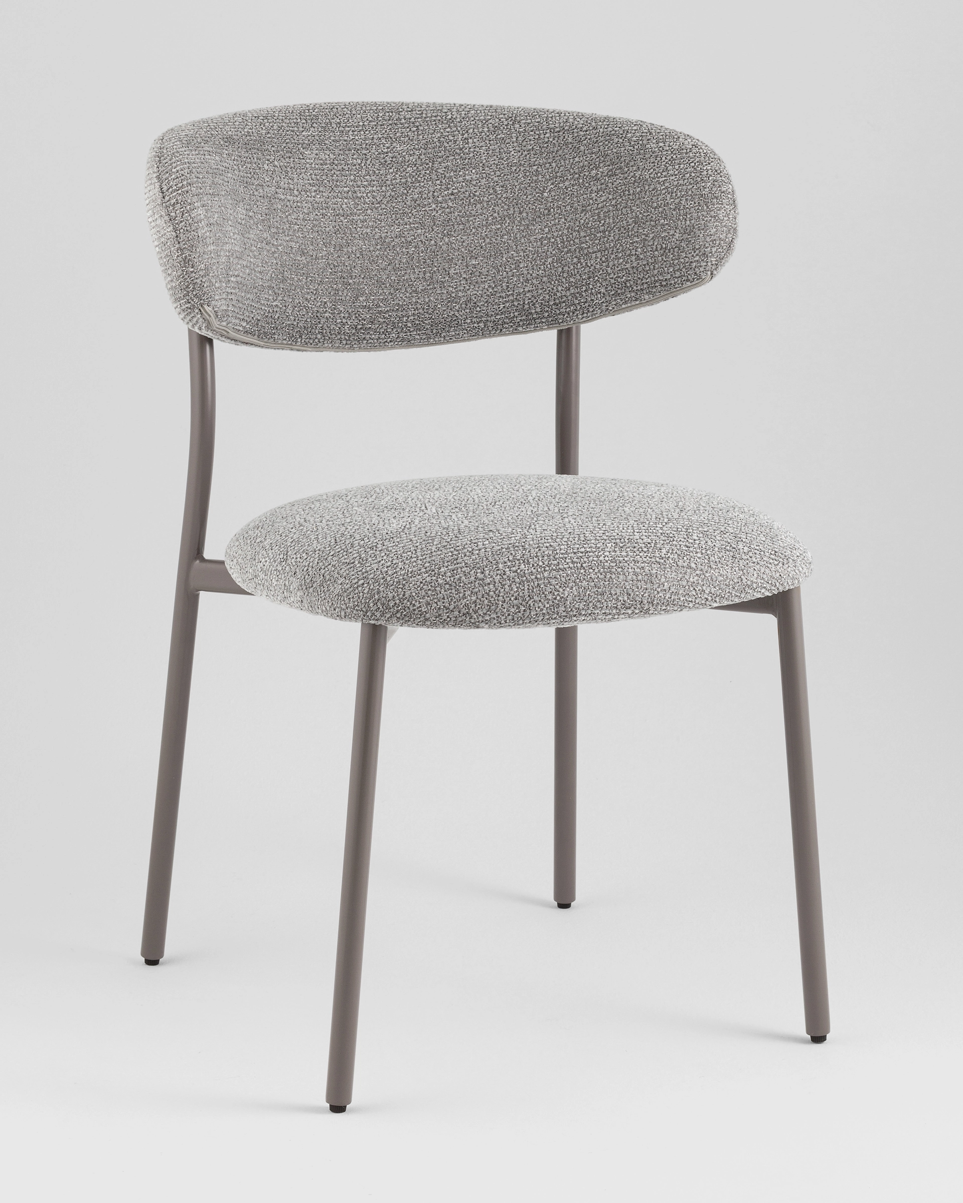 Обивка из ткани букле отличается приятной текстурой и трендовой фактурой. Этот материал устойчив к износу, хорошо держит форму и создаёт уютный, тактильно комфортный эффект. Наполнитель сиденья из поролона обеспечивает мягкую посадку, делая использование стула особенно комфортным даже при длительном сидении.