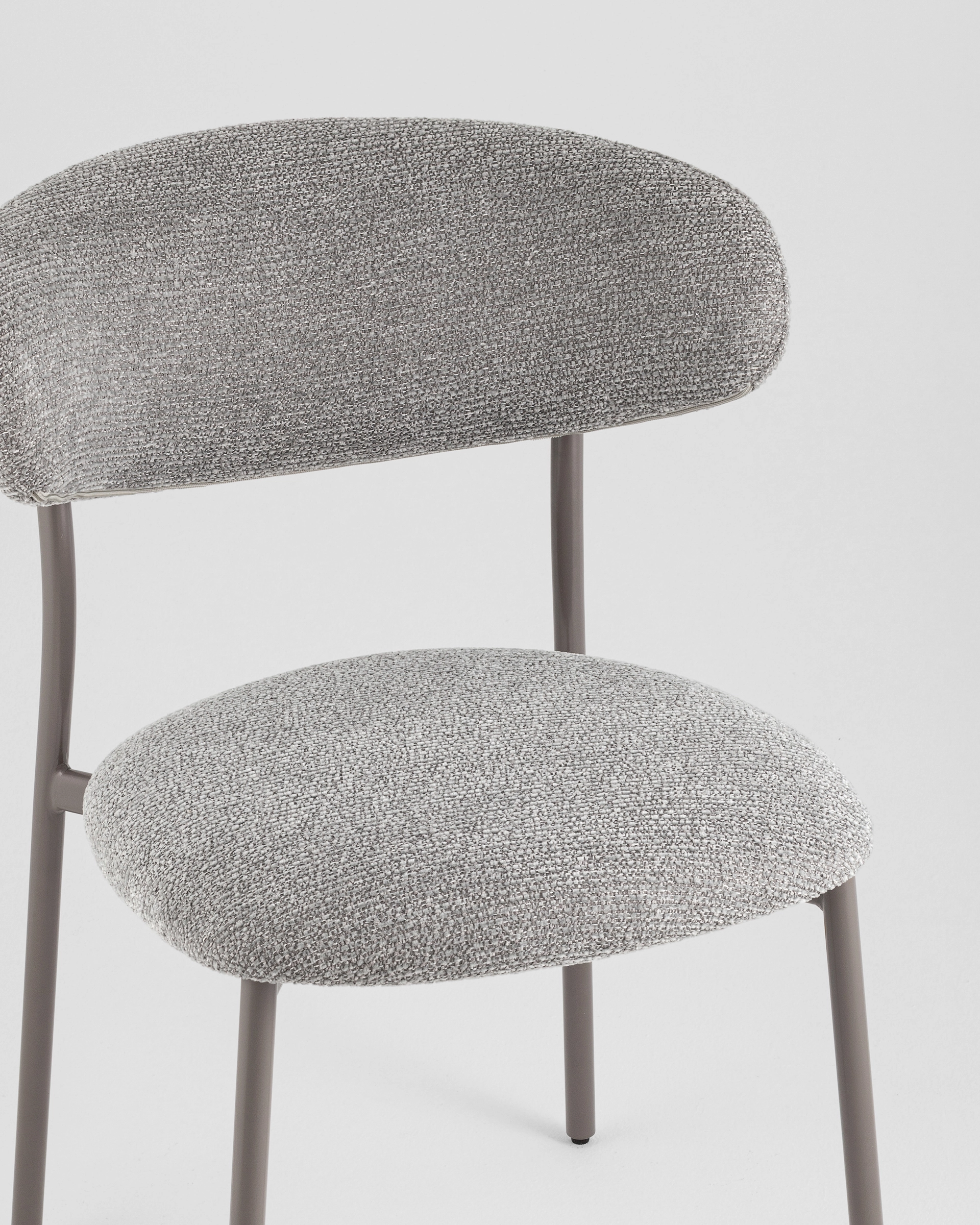 Стул Ayla выполнен в современном стиле с лаконичными формами и элегантными линиями. Серые металлические ножки придают модели лёгкость, а полукруглая спинка добавляет мягкости силуэту, обеспечивая не только удобство, но и изящный внешний вид.