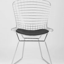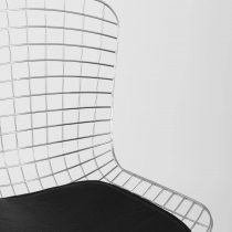 Комплект из четырех стульев. Оригинальная и современная модель стула Bertoia прекрасно впишется в любой интерьер дома или ресторана. Спинка и сидение выполнены из металлических прутьев с гальваническим покрытием в виде сетки, образуя единое целое. Подушка изготовлена из экокожи в черном цвете. Ножки выполнены из металла и имеют подставки, которые обеспечивают качественное “сцепление” с полом. Такая конструкция стула способна подарить ощущение легкости.