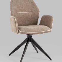 Мягкий стул со спинкой анатомической формы и удобными подлокотниками подарит комфорт и уют. Тканевая обивка оформлена декоративным кантом. Прочные ножки изготовлены из металла в черном цвете, поэтому обеспечивают хорошую устойчивость и делают стул оригинальным. Подпятники на ножках препятствуют скольжению и помогут защитить напольное покрытие от царапин. Изделие будет прекрасно смотреться как отдельный предмет мебели, так и в комплекте с обеденным или письменным столом.