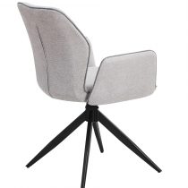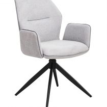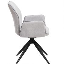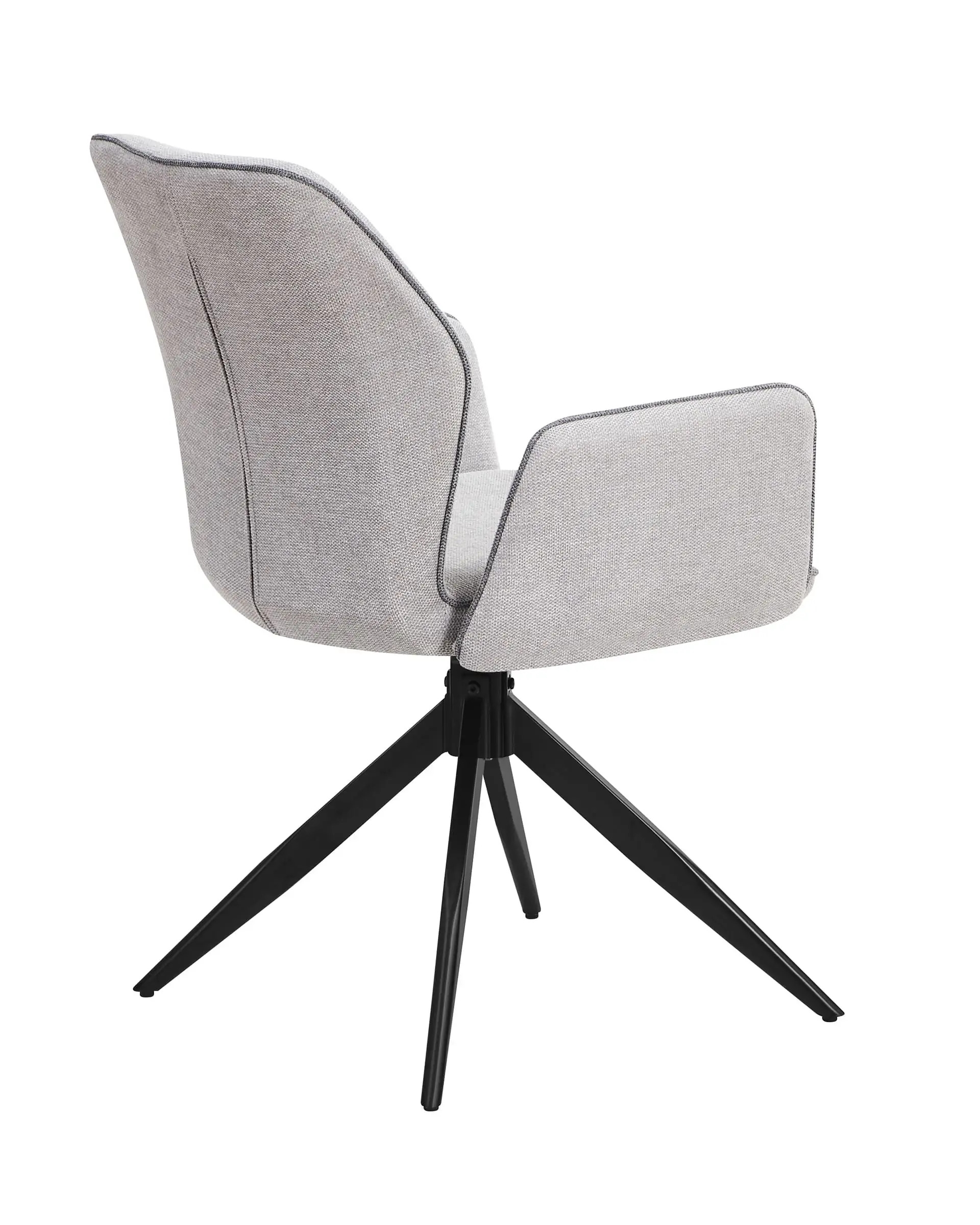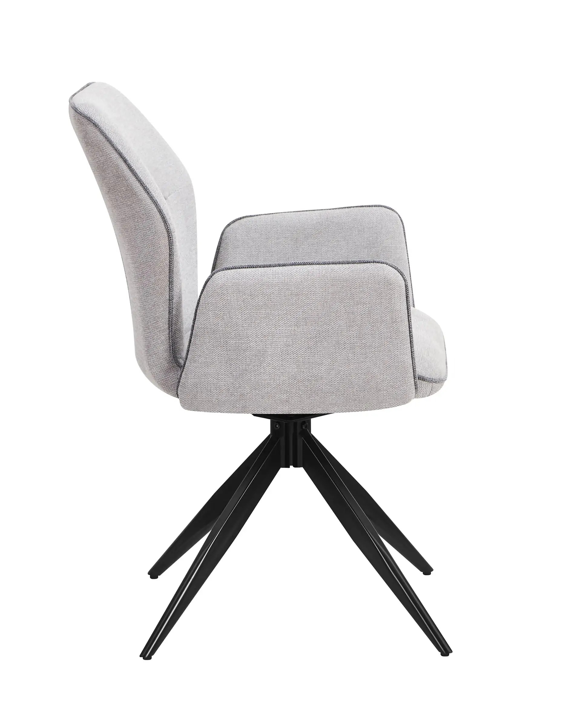 Мягкий стул со спинкой анатомической формы и удобными подлокотниками подарит комфорт и уют. Тканевая обивка оформлена декоративным кантом. Прочные ножки изготовлены из металла в черном цвете, поэтому обеспечивают хорошую устойчивость и делают стул оригинальным. Подпятники на ножках препятствуют скольжению и помогут защитить напольное покрытие от царапин. Изделие будет прекрасно смотреться как отдельный предмет мебели, так и в комплекте с обеденным или письменным столом.