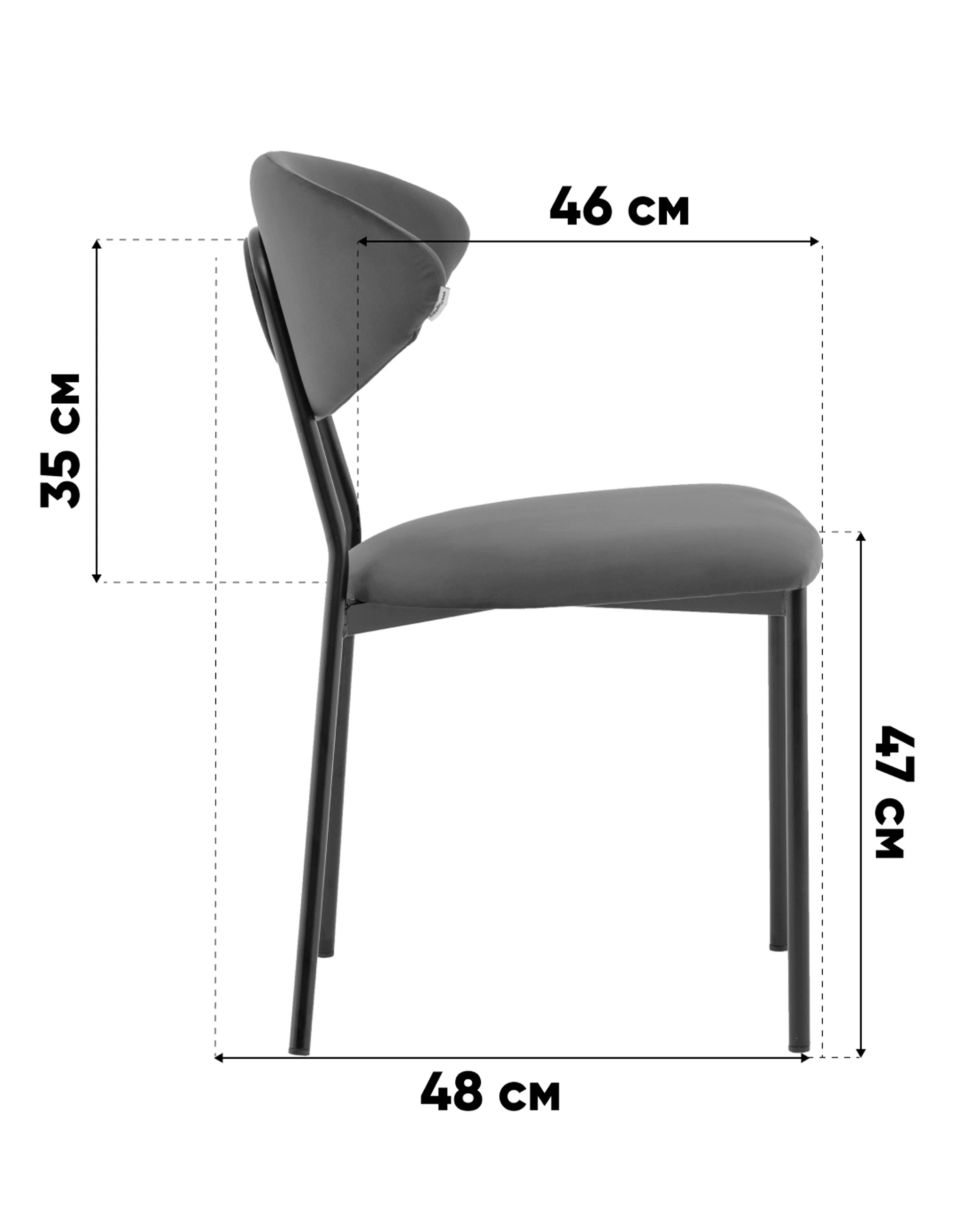 Удобство и надёжность в эксплуатации.Металлический каркас с чёрным матовым покрытием обеспечивает прочность и устойчивость. Обивка выполнена из мягкого на ощупь велюра, который придаёт стулу благородный внешний вид и лёгкость в уходе. Сиденье и спинка наполнены ППУ, обеспечивая приятную поддержку при длительном сидении.