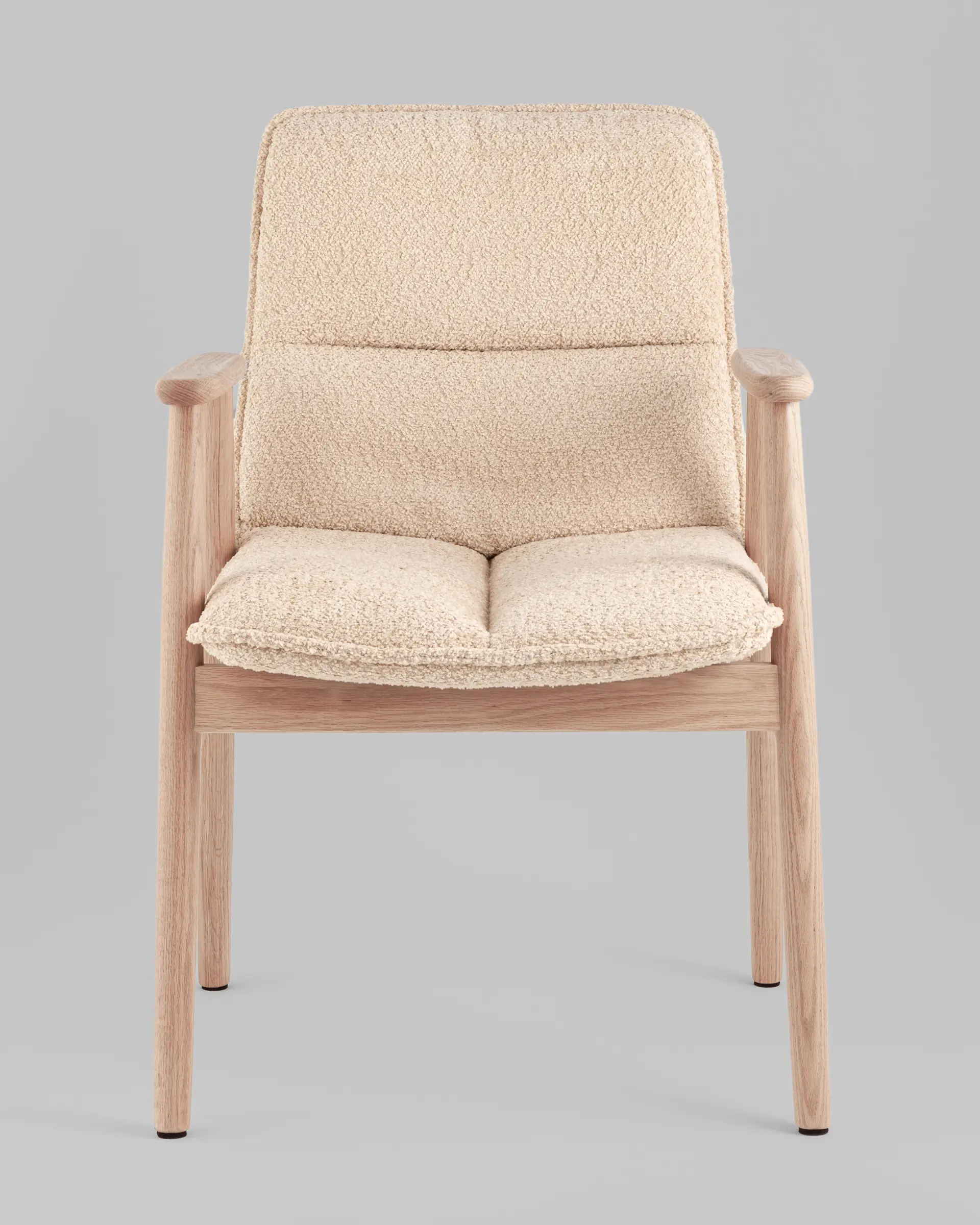 Натуральные акценты.Особое внимание заслуживают ножки из массива дуба – прочного и долговечного материала, который ценится за благородную текстуру и устойчивость. Такой акцент не только усиливает конструкцию, но и делает стул визуально тёплым и выразительным.