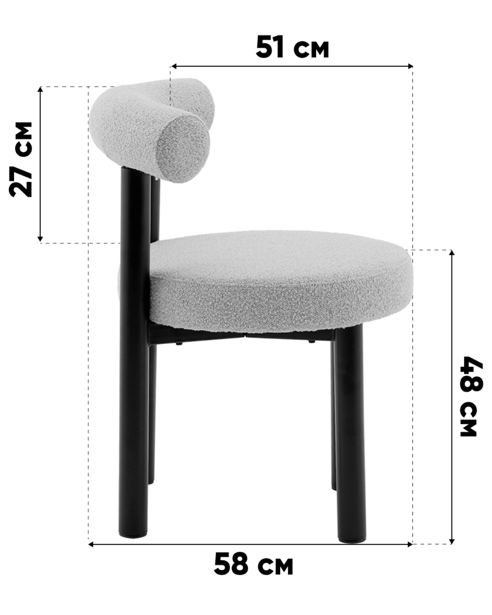 Стиль и универсальность.Прекрасное дополнение для современных интерьеров, идеально впишется в минималистичный или дизайнерский стиль и отлично смотрится в комплекте. Подойдет для дома, обеденной зоны, гостиной, а также для ресторанов и кафе. Компактные размеры и стильная форма позволяют легко сочетать его с различными типами столов, создавая уютную и функциональную атмосферу.