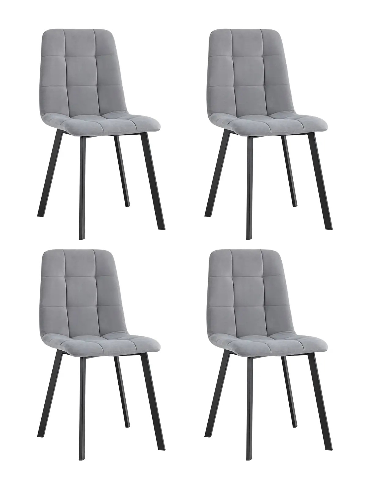Комплект из четырех стульев. Классический обеденный стул без подлокотников на металлическом каркасе. Плавная форма сиденья и спинки, красивая строчка на внутренней стороне обивки, эргономичная спинка, аккуратное исполнение и качественные материалы. Стулья прослужат долгие годы, не требуют много времени для ухода. Лаконичный дизайн делает его универсальным вариантом для обустройства обеденной зоны.