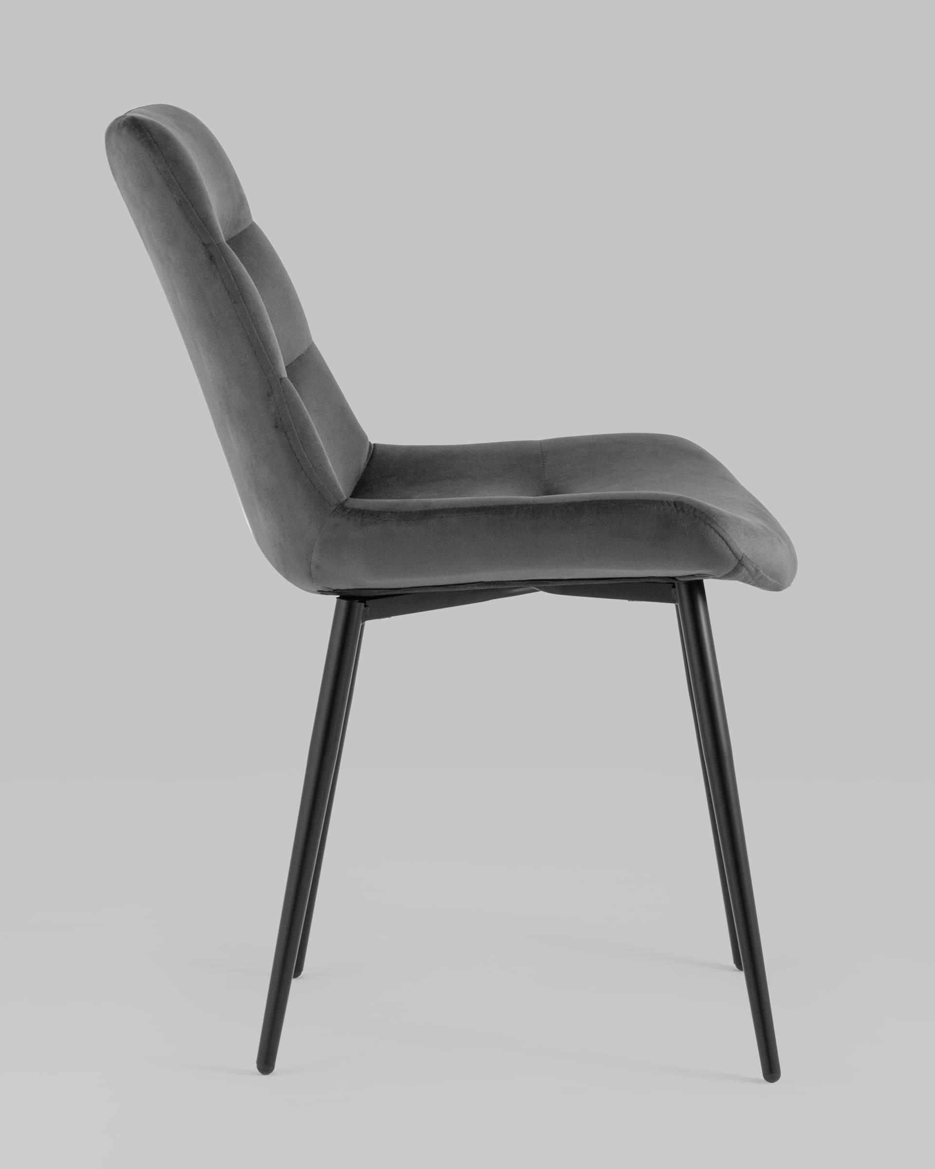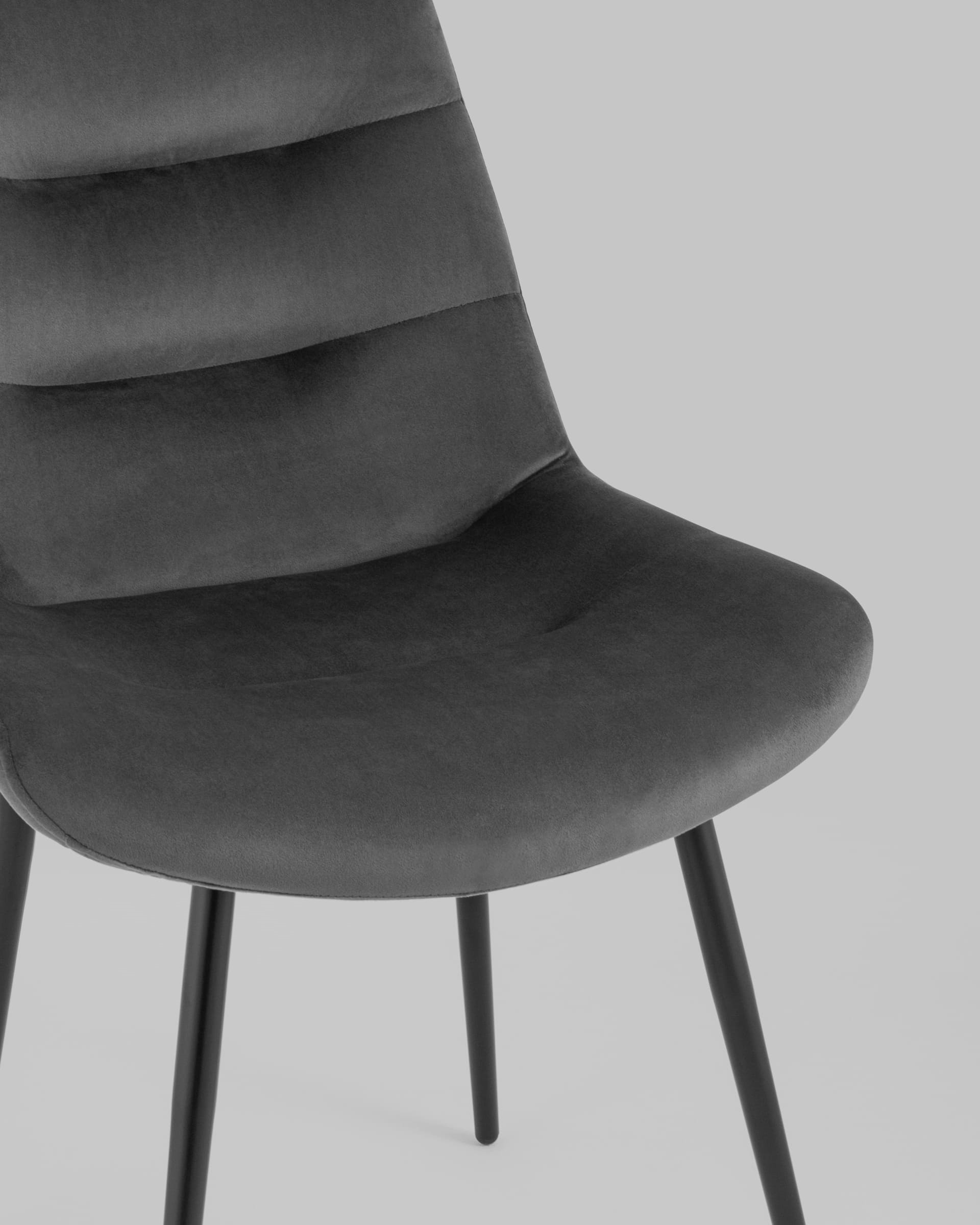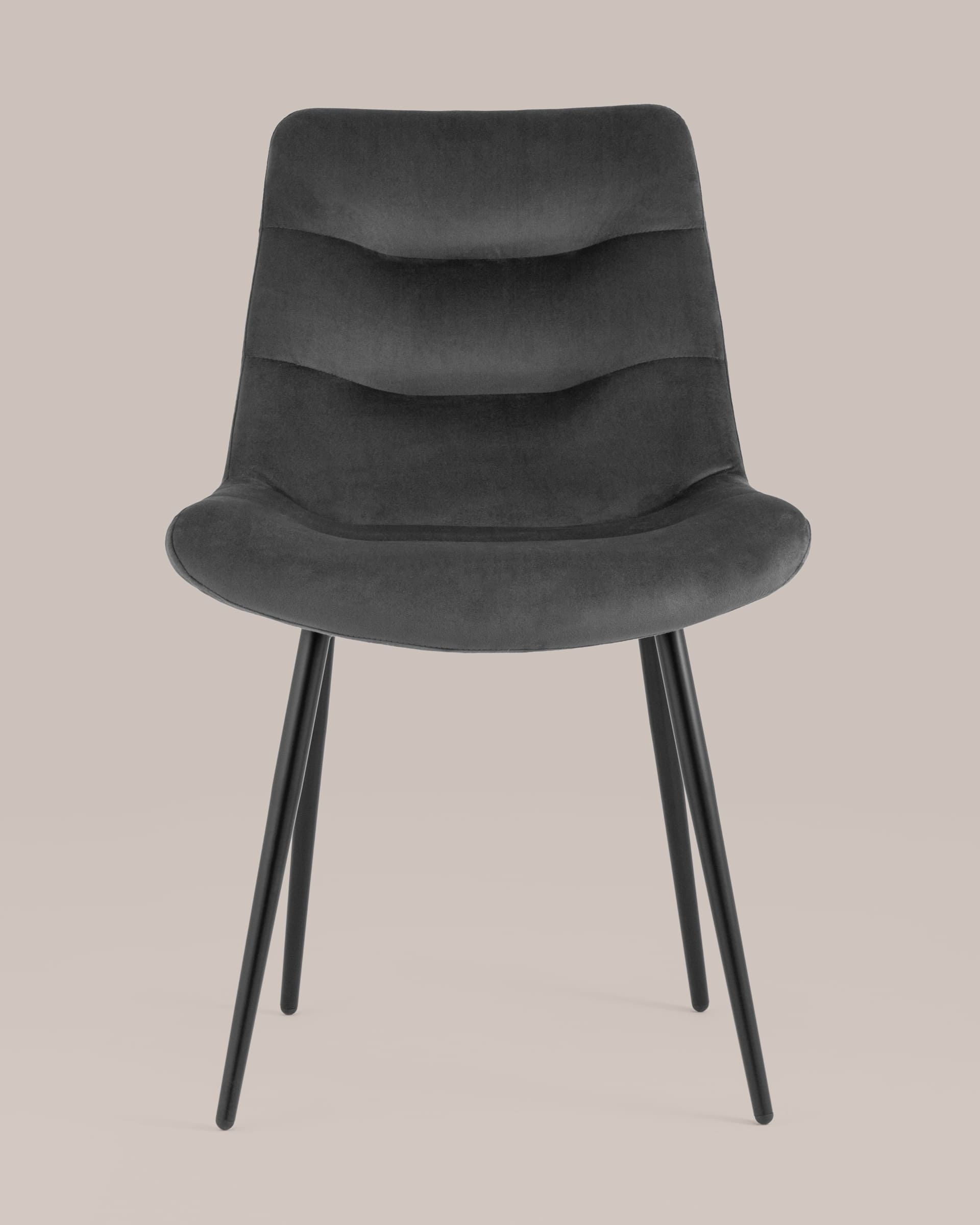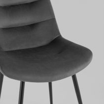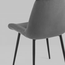 Кухонный стул в мягкой обивке из велюра без подлокотников. Анатомическая форма сиденья обеспечивает удобство, а декоративная горизонтальная стяжка придает объем и защищает от образования вмятин. Металлические ножки с крестовидным каркасом выдерживают значительные нагрузки. Подпятники ножек не испортят напольное покрытие и предохраняют от скольжения. Лаконичный дизайн украсит любой кухонный интерьер.