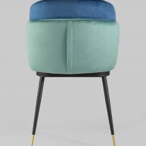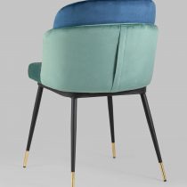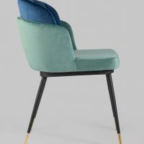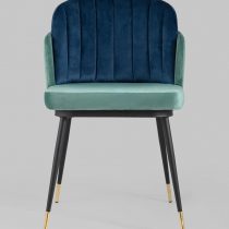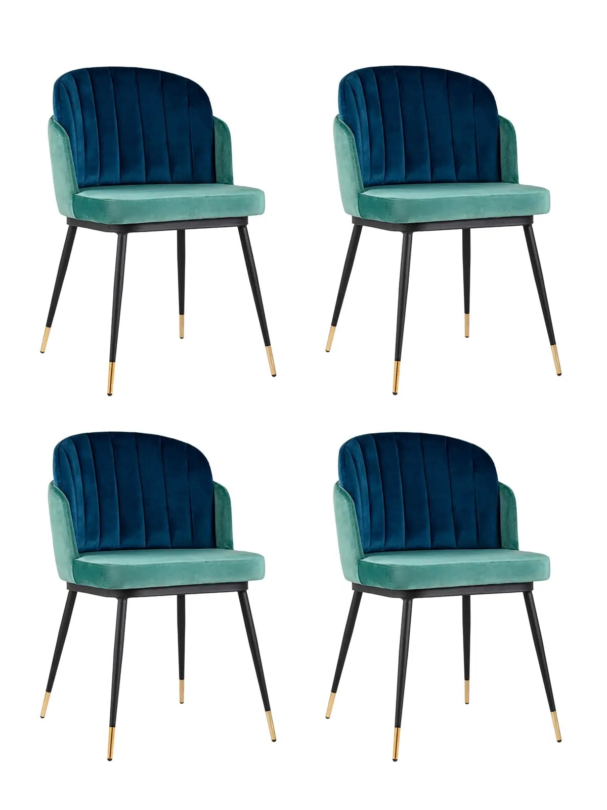 Комплект из четырех стульев. Мягкий двухцветный кухонный стул с обивкой из велюра. Надежная опора достигается благодаря металлическому каркасу и удобным устойчивым ножкам, красиво украшенным золотом. Спинка состоит из двух элементов, внутренняя часть с вертикальной строчкой.