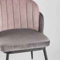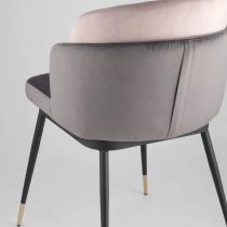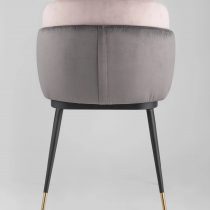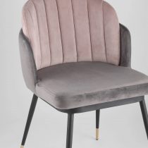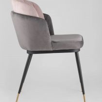 Комплект из четырех стульев. Мягкий двухцветный кухонный стул с обивкой из велюра. Надежная опора достигается благодаря металлическому каркасу и удобным устойчивым ножкам, украшенным золотом. Спинка состоит из двух элементов, внутренняя часть с красивой вертикальной строчкой.