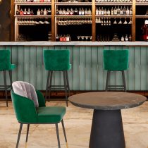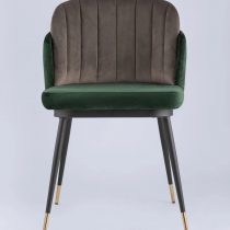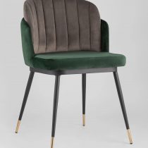 Мягкий двухцветный кухонный стул с обивкой из велюра. Надежная опора достигается благодаря металлическому каркасу и удобным устойчивым ножкам, красиво украшенным золотом. Спинка состоит из двух элементов, внутренняя часть с вертикальной строчкой.