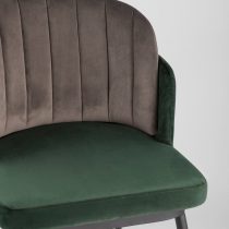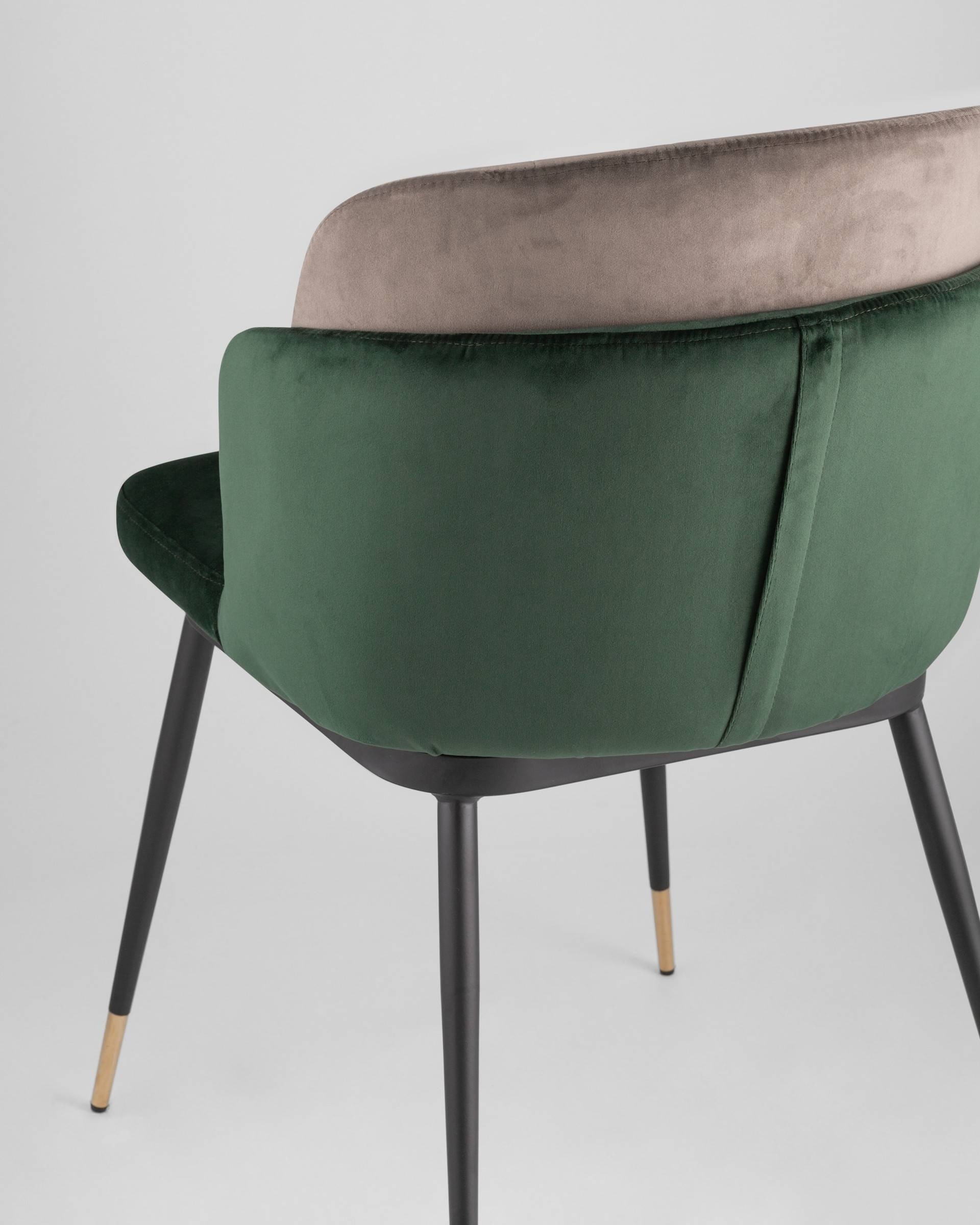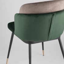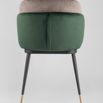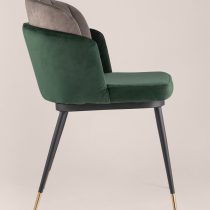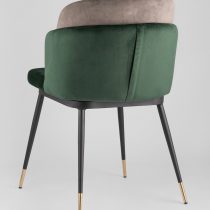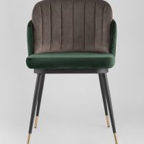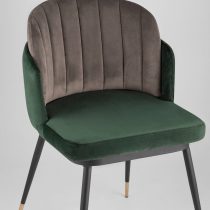 Мягкий двухцветный кухонный стул с обивкой из велюра. Надежная опора достигается благодаря металлическому каркасу и удобным устойчивым ножкам, красиво украшенным золотом. Спинка состоит из двух элементов, внутренняя часть с вертикальной строчкой.