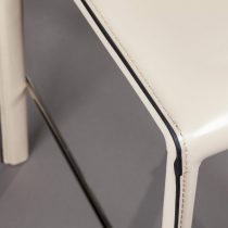 Обивка стула выполнена в регенерированной коже – обивочном материале, который сделан путём переплетения расщеплённых волокон натуральной кожи. В состав модифицированной кожи также входят полимеры и специальные дубильные добавки.