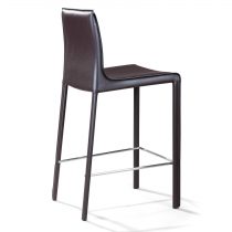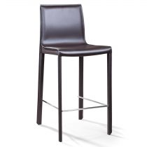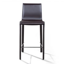 Высокий полубарный стулBarrie всегда будет выгодно смотреться в интерьере, подчеркивая вкус и статус владельца.Модель отличается привлекательным внешним видом и практичностью. Стиль, в котором он выполнен, можно охарактеризовать как мягкая геометрия! Прямоугольное сиденье, высокая спинка с небольшим уклоном назад делают стул невероятно удобным. Главная особенность модели – плавный переход спинки в сиденье, образующий мягкий изгиб. Ножки также обтянутые кожей, создают единый образ и являются визуальным продолжением сиденья.