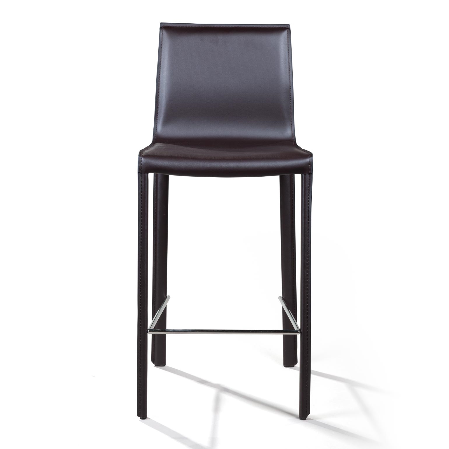 Крепкие металлические ножки скрыты под натуральной кожей такого же цвета, как и сам стул, благодаря этому создается лаконичный образ единого целого. На ножках предусмотрены хромированная подставка для ног и специальные пластиковые накладки, которые придают полубарному стулу дополнительную устойчивость и защищают полот царапин.
