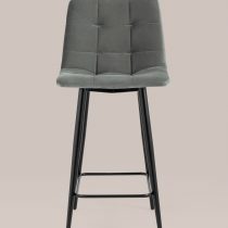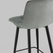 Лаконичный полубарный стул с обивкой из велюра без подлокотников. Плавная форма сиденья и спинки обеспечивают комфортную посадку. Красивая строчка на внутренней стороне велюровой обивки, эргономичная спинка, аккуратное исполнение и качественные материалы. Ножки выполнены из металла.