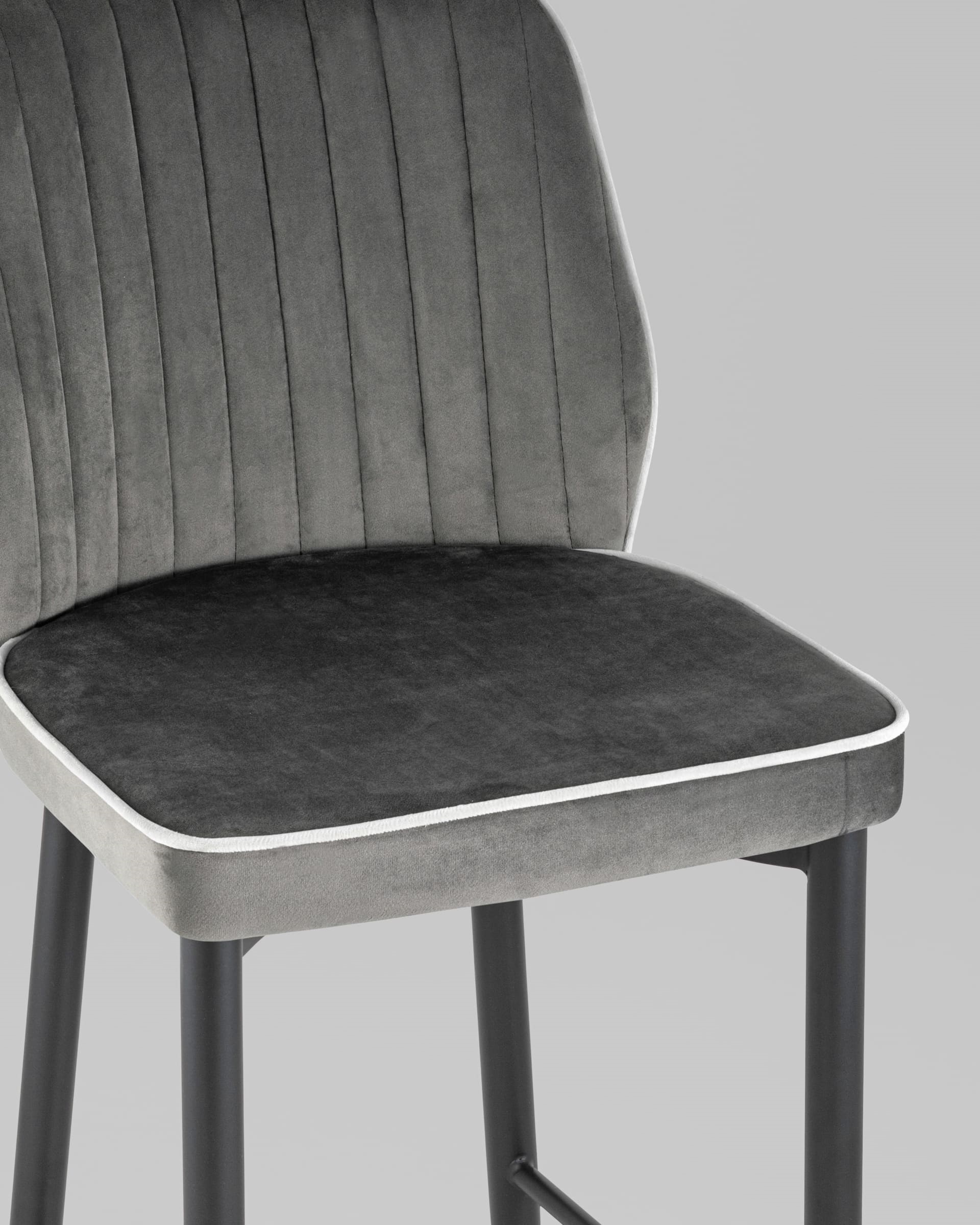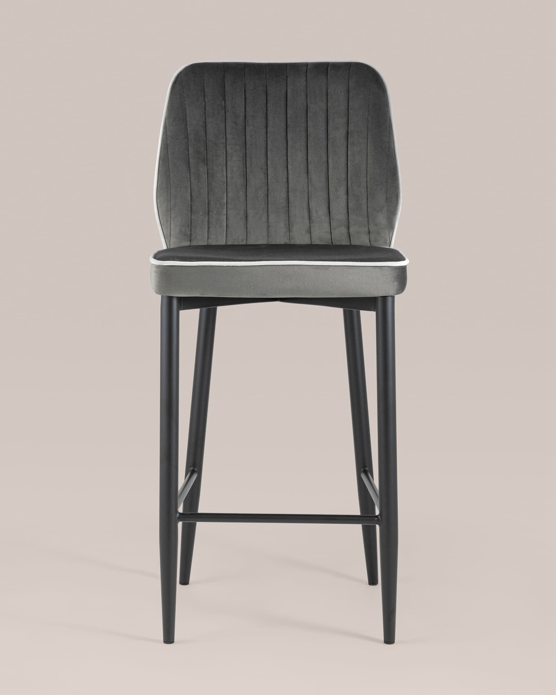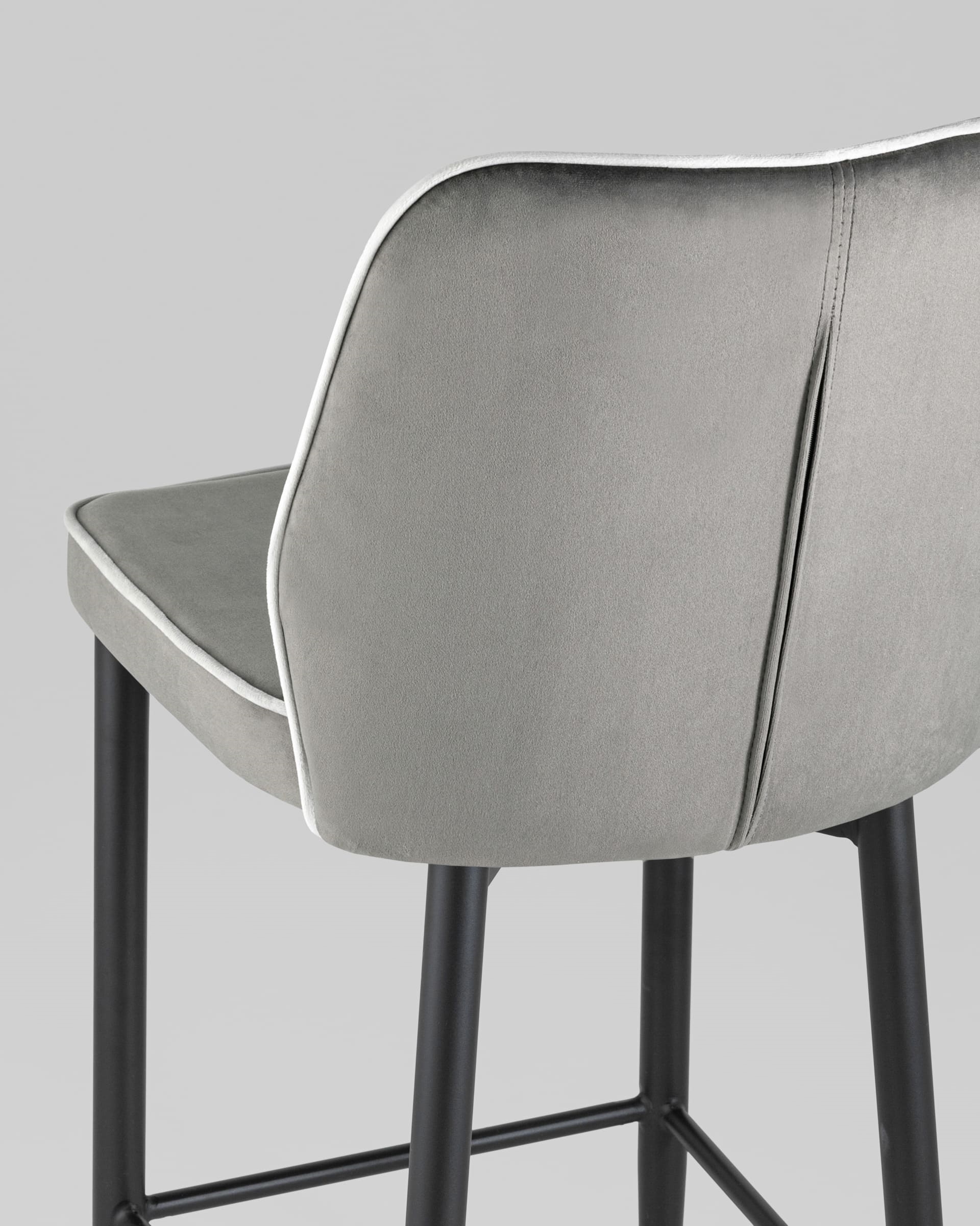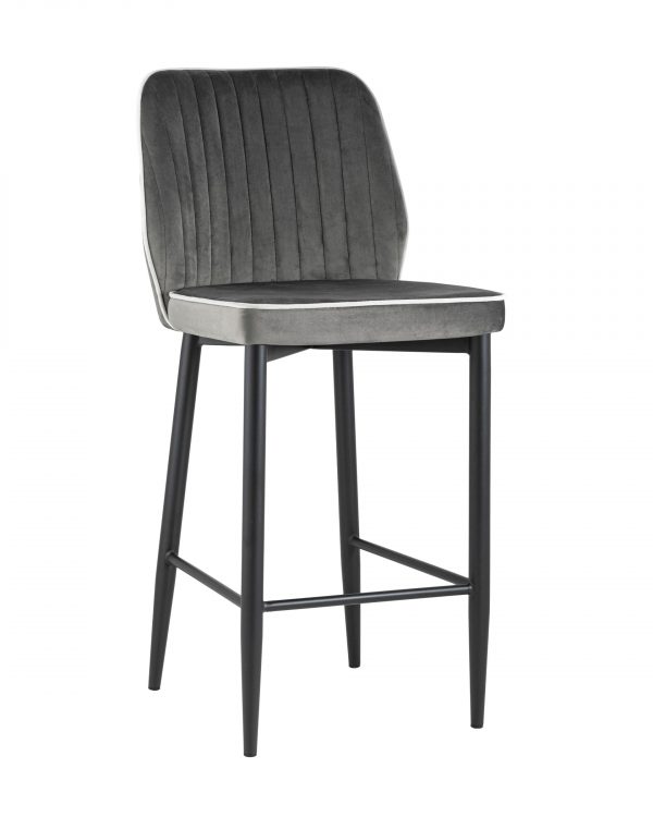Интересное сочетание современного дизайна и вневременной мебельной классики. Обивка из мебельной ткани, мягкой, бархатистой и очень приятной на ощупь. Мебельная ткань велюр – очень практичная и устойчивая к истиранию. Ножки полубарного стула выполнены из металла и имеют удобную подножку.