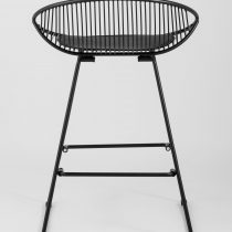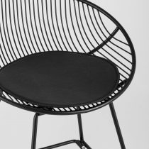 Необычный дизайн барного стула UFO станет акцентом интерьера кухни в современном стиле. Спинка и сидение выполнены из металлических прутьев черного цвета. Подушка изготовлена из черной экокожи. Ножки выполнены из металла в тон сидения и имеют подставки, которые предотвращают скольжение стула по поверхности пола.