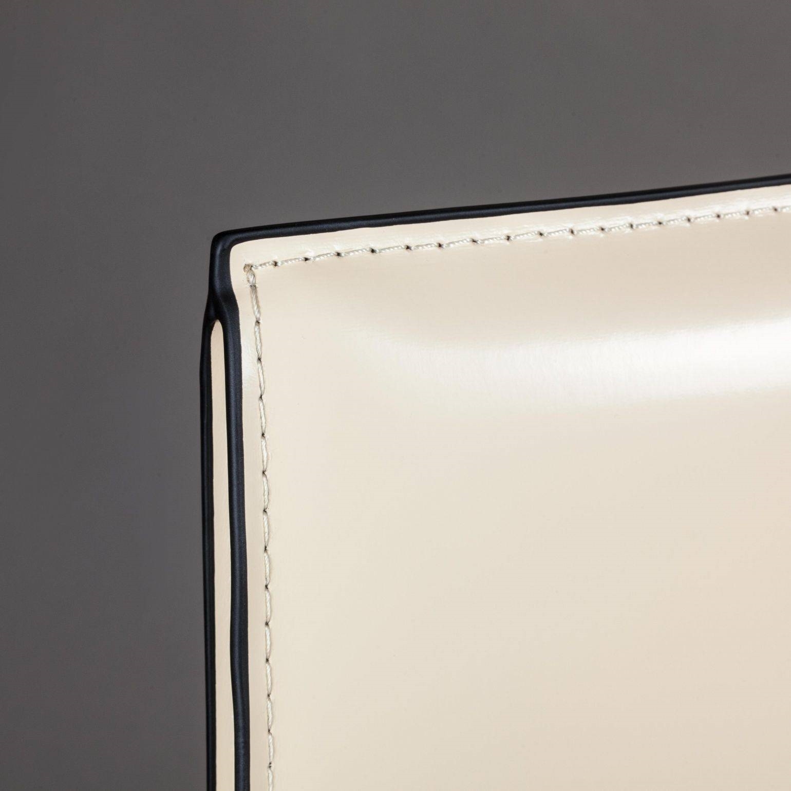 Крепкие металлические ножки скрыты под натуральной кожей такого же цвета, как и сам стул, благодаря этому создается лаконичный образ единого целого. На ножках предусмотрены специальные пластиковые накладки, которые придают стулу дополнительную устойчивость и защищают полот царапин.