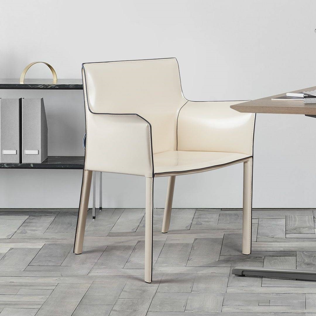 Кожаный стул Barrie всегда будет выгодно смотреться в интерьере, подчеркивая вкус и статус владельца. Модель отличается привлекательным внешним видом и практичностью. Стиль, в котором он выполнен, можно охарактеризовать как мягкая геометрия! Прямоугольное сиденье, высокая спинка с небольшим уклоном назад делают стул невероятно удобным. Высокие подлокотники в дизайне стула как дополнительная опция для еще большего комфорта. Главная особенность модели – плавный переход спинки в сиденье, образующий мягкий изгиб. Ножки обеденного стула, также обтянутые кожей, создают единый образ и являются визуальным продолжением сиденья.