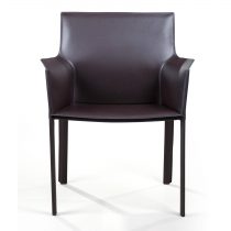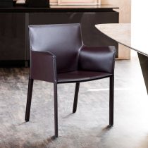 Кожаный стул Barrie всегда будет выгодно смотреться в интерьере, подчеркивая вкус и статус владельца. Модель отличается привлекательным внешним видом и практичностью. Стиль, в котором он выполнен, можно охарактеризовать как мягкая геометрия! Прямоугольное сиденье, высокая спинка с небольшим уклоном назад делают стул невероятно удобным. Высокие подлокотники в дизайне стула как дополнительная опция для еще большего комфорта. Главная особенность модели – плавный переход спинки в сиденье, образующий мягкий изгиб. Ножки обеденного стула, также обтянутые кожей, создают единый образ и являются визуальным продолжением сиденья.