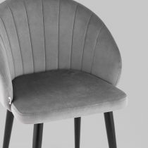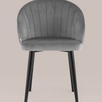 Обеденный стул Брюссель с мягкой полукруглой спинкой и сидением из нежного велюра отлично впишется в обеденную зону любой современной кухни. Внутренняя сторона спинки декорирована вертикальными прямыми строчками. Каркас металлический, ножки выполнены в черном цвете. Дополнительно предусмотрены специальные подпятники, которые предотвращают скольжение и повреждение напольного покрытия. Прекрасно сочетается с обеденным или письменным столом.