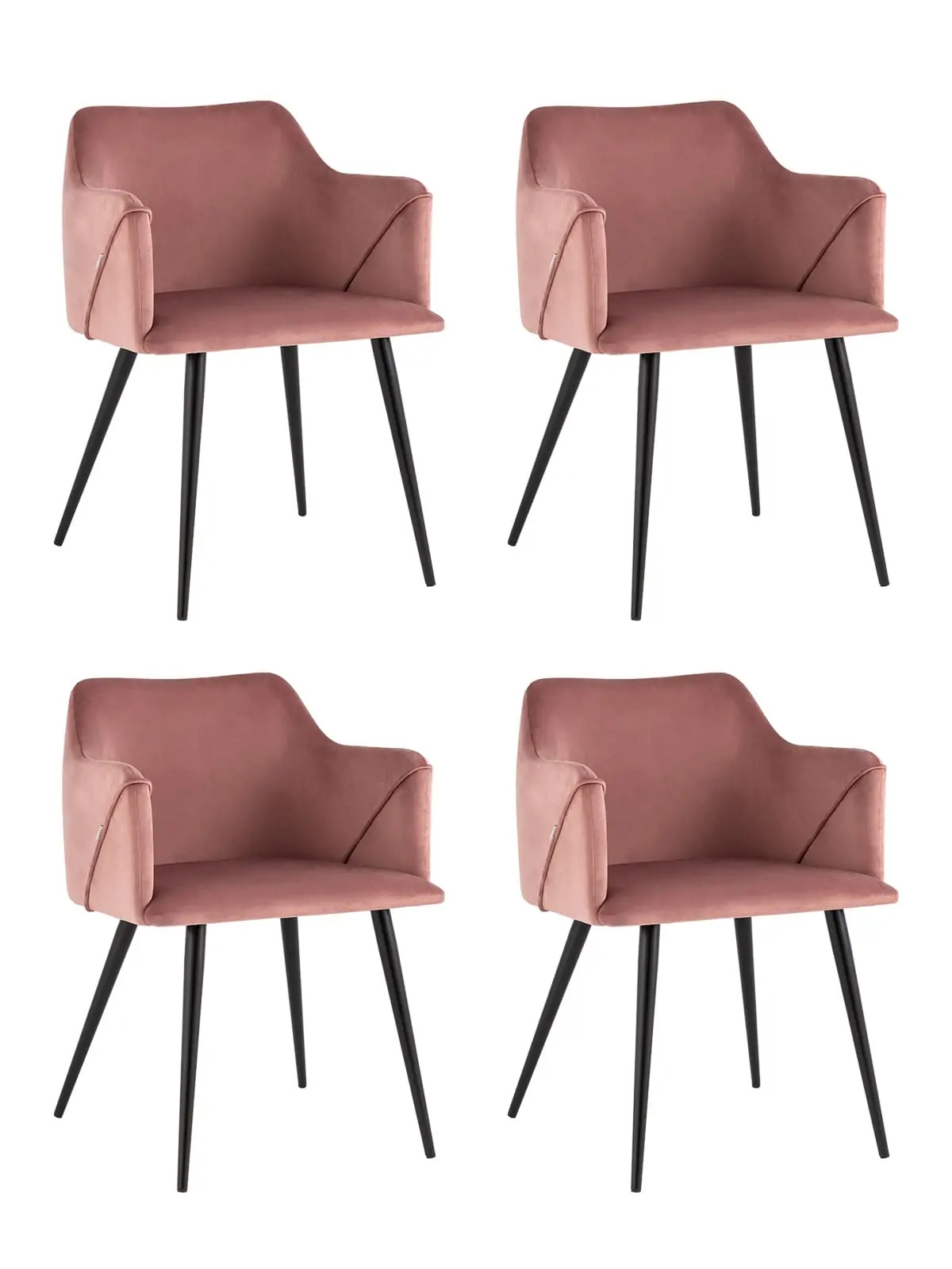 Комплект из четырех стульев. Комфортный и стильный стул Джоэл с подлокотниками. Мягкая обивка обтянула велюром. Удобная посадка обеспечивается за счет широкой спинки, которая плавно переходит в подлокотники, создавая эргономичную форму. Металлические ножки выполнены в черном цвете. Выдерживают нагрузку до 100 кг. Стул Джоэл дополнит любой интерьер дома, кафе или лаундж зоны.