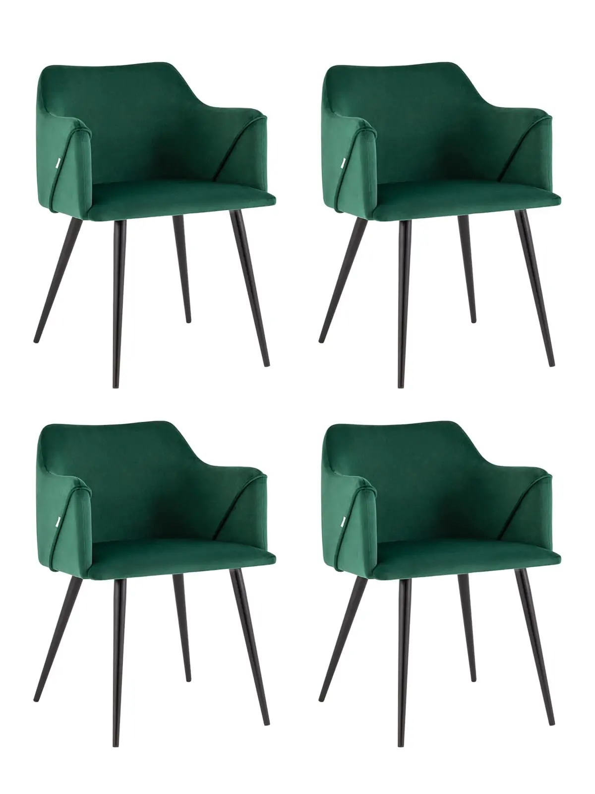 Комплект из четырех стульев. Комфортный и стильный стул Джоэл с подлокотниками. Мягкая обивка обтянула велюром. Удобная посадка обеспечивается за счет широкой спинки, которая плавно переходит в подлокотники, создавая эргономичную форму. Металлические ножки выполнены в черном цвете. Выдерживают нагрузку до 100 кг. Стул Джоэл дополнит любой интерьер дома, кафе или лаундж зоны.